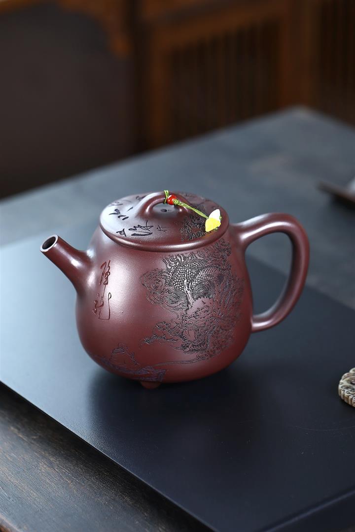 150cc原礦大紅袍泥繪石飄茶壺POT8569
