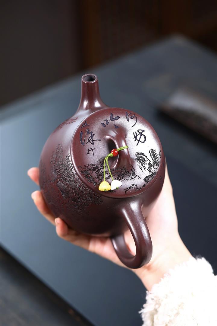 【作品介紹】此款壺形線條流暢,壺把,壺嘴,壺身壹氣呵成栩栩如生,是收藏把玩的好壺,泥料色澤古樸典雅,日久使用,漸露鋒芒,養成變化快,溫潤莊重,用其泡茶,使用的年代久,壺身就溫潤,泡出來的茶湯也就醇郁芳馨。