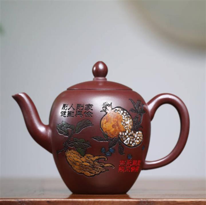 150cc原礦大紅袍泥繪石飄茶壺POT8569