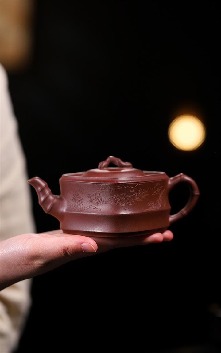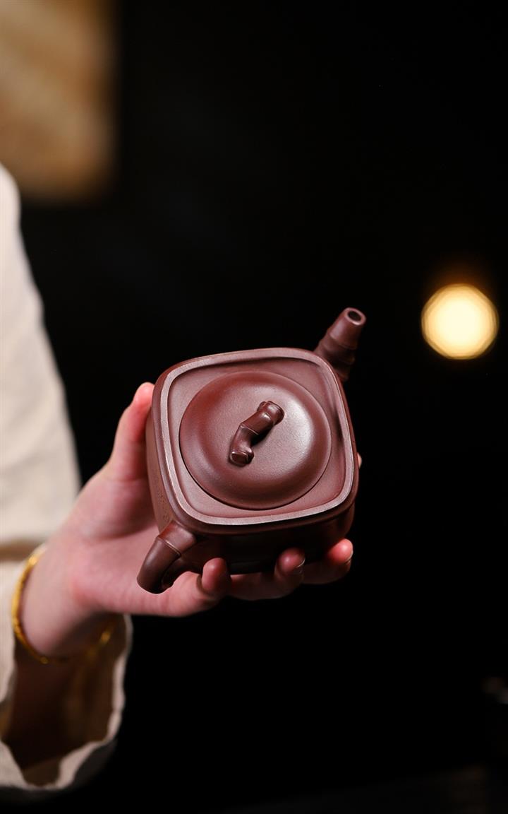 250cc原礦紫泥刻繪四方竹茶壺POT8568