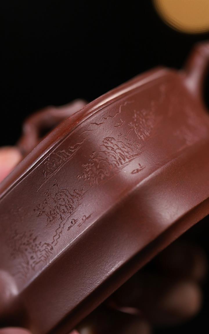 【作品介紹】此款壺形線條流暢,壺把,壺嘴,壺身壹氣呵成栩栩如生,是收藏把玩的好壺,泥料色澤古樸典雅,日久使用,漸露鋒芒,養成變化快,溫潤莊重,用其泡茶,使用的年代久,壺身就溫潤,泡出來的茶湯也就醇郁芳馨。