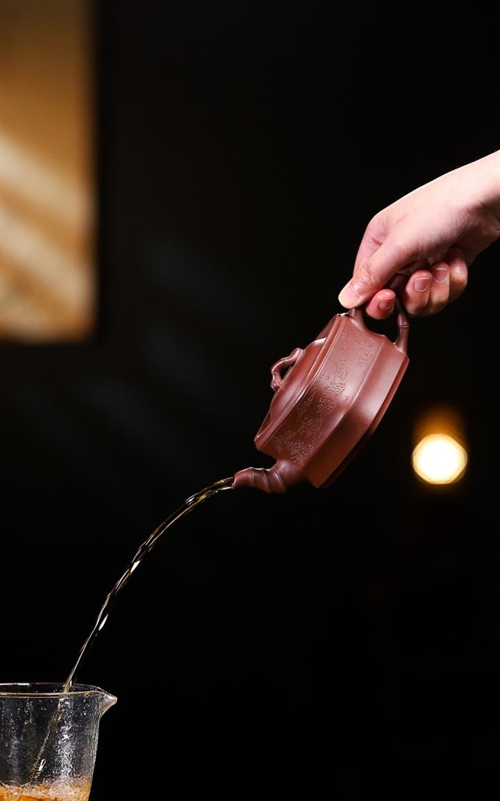 【泥料特點】砂土氣重,似淳實農民,日久使用,漸露鋒芒,養成變化,溫潤莊重。紫砂是壹種雙重氣孔結構的多孔性材質,氣孔微細,密度高。用紫砂壺沏茶,不失原味,且香不渙散,得茶之真香真味。紫砂使用越久,壺身色澤越發光亮照人,氣韻溫雅。紫砂壺長久使用器身會因撫摸擦拭,變得越發溫潤光澤。
