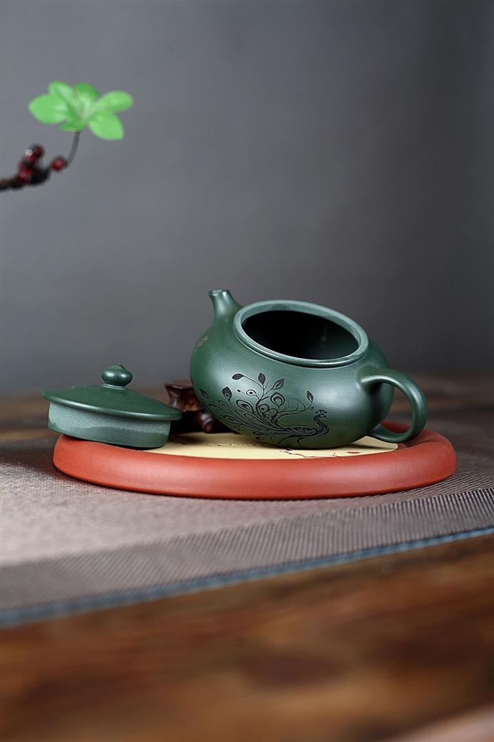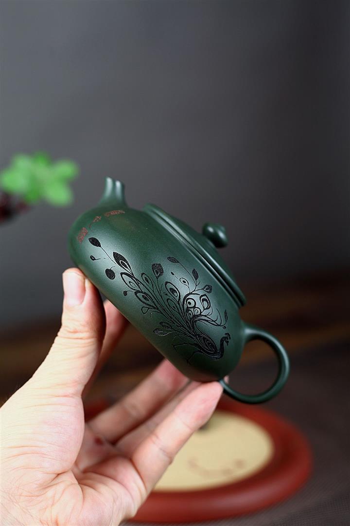 230cc原礦墨綠泥孔雀寒江茶壺POT8572