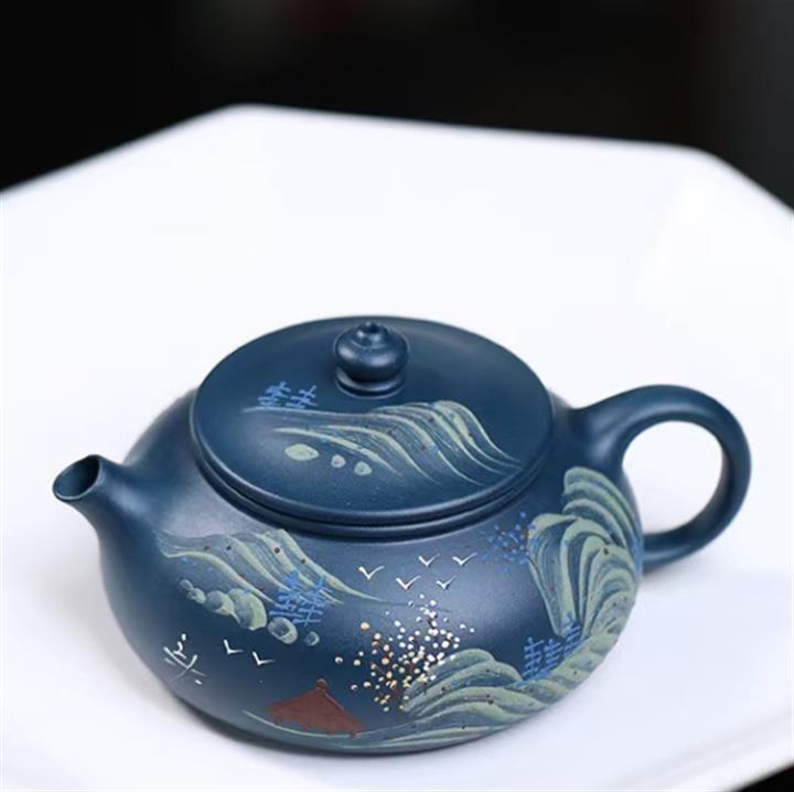 130cc原礦天青泥山水寒江孤影茶壺POT8578