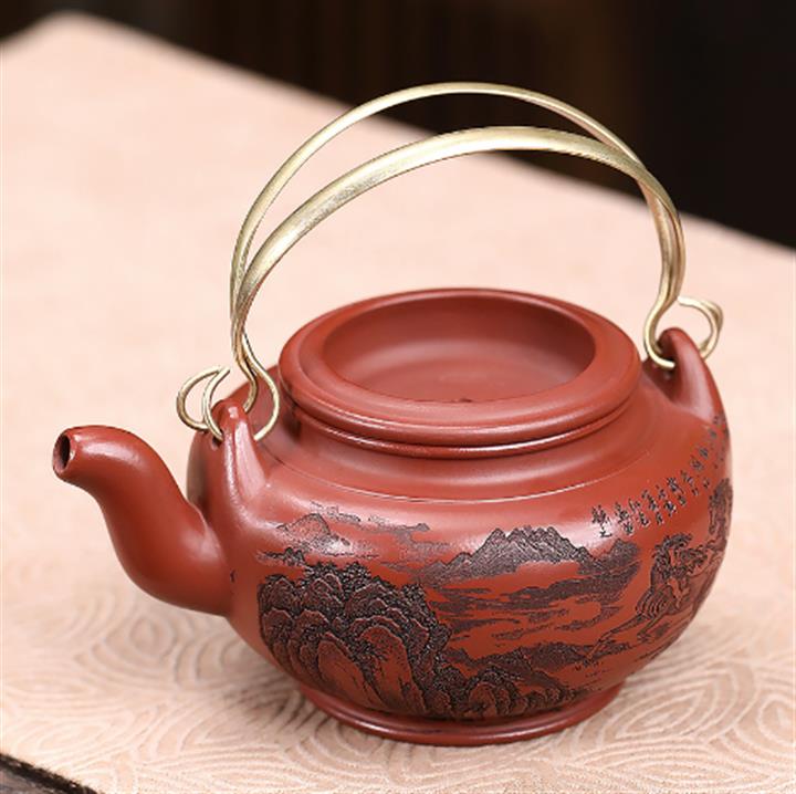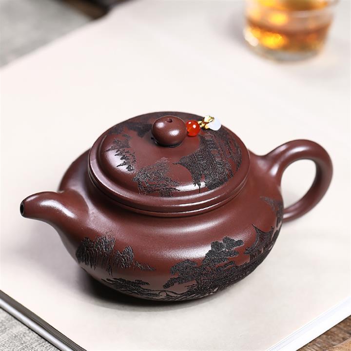 365cc原礦紫泥刻繪山水仿古茶壺POT8580