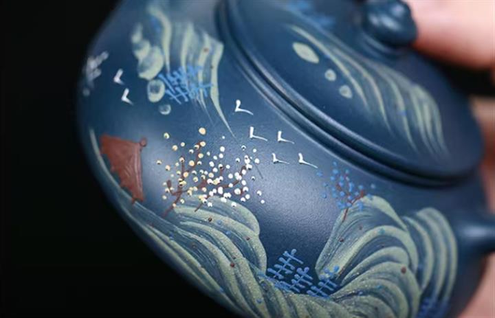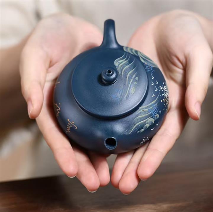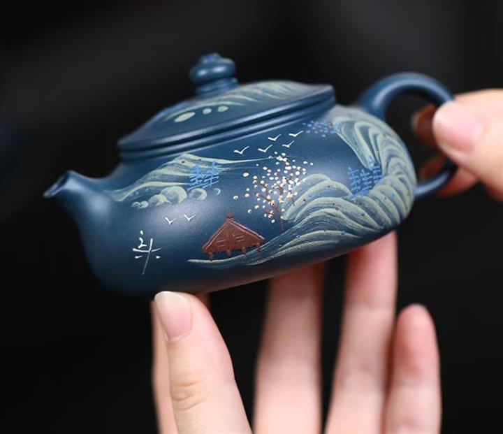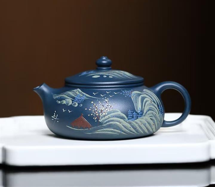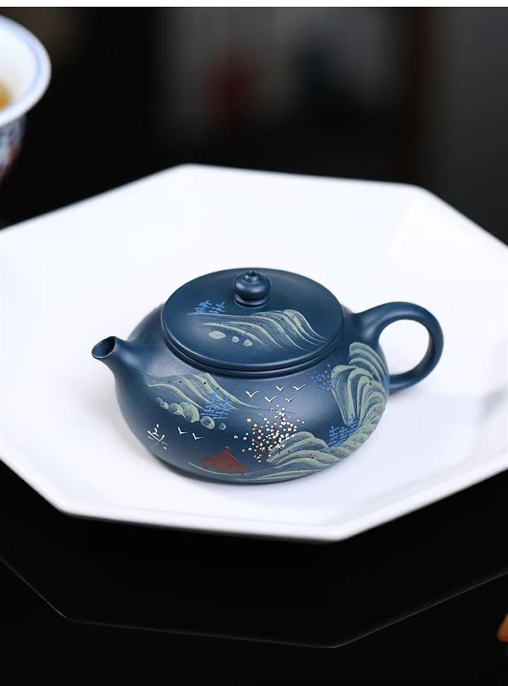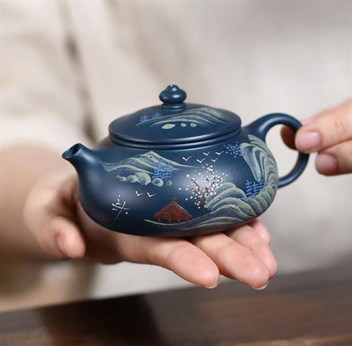 130cc原礦天青泥山水寒江孤影茶壺POT8578