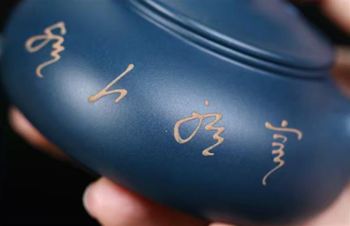 150cc原礦黃金段泥刻繪茄瓜茶壺POT8579