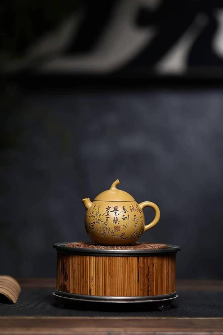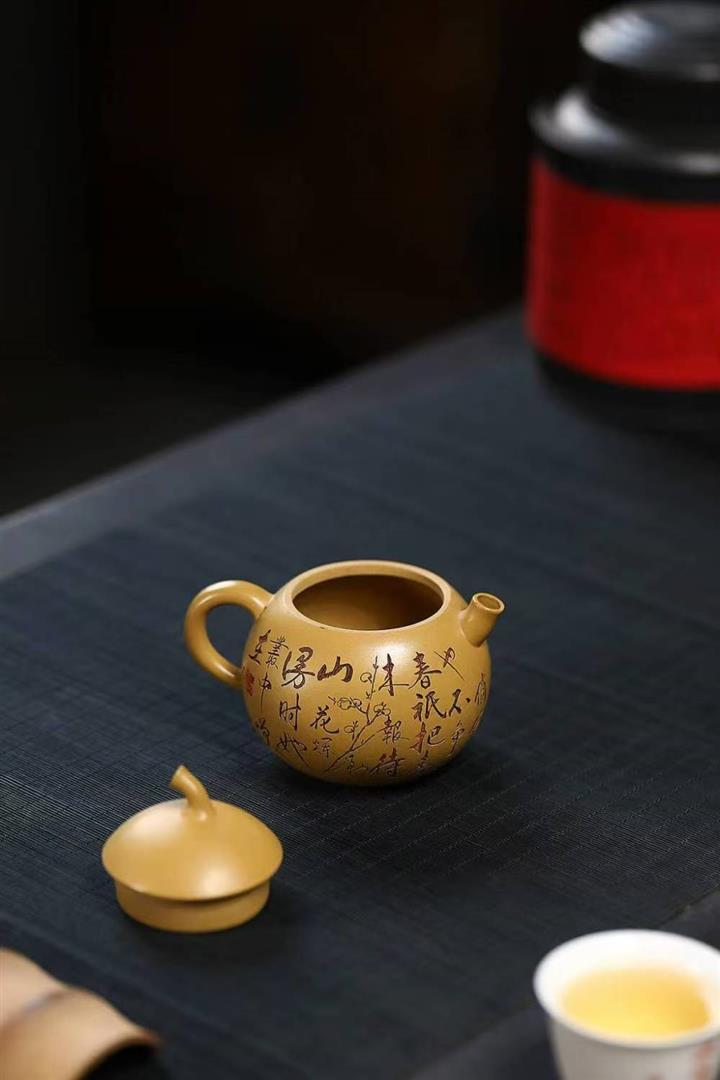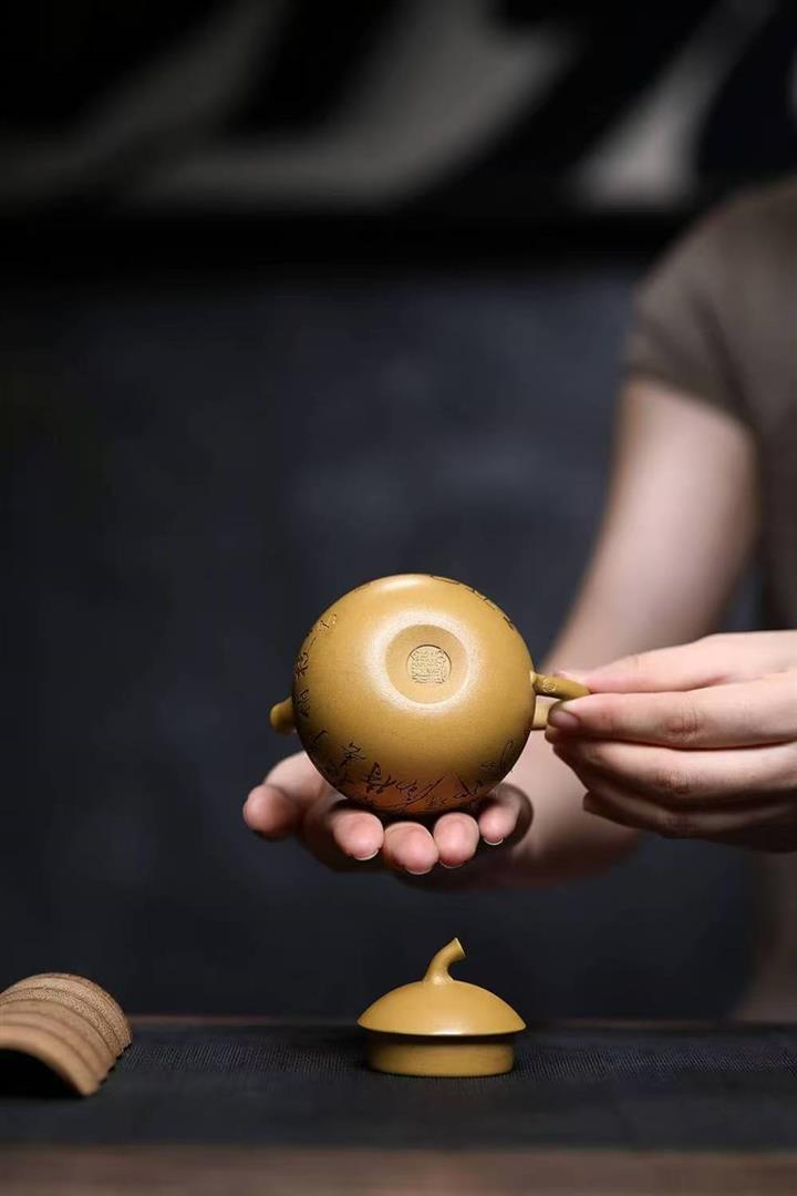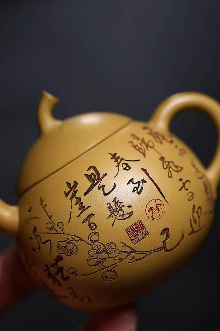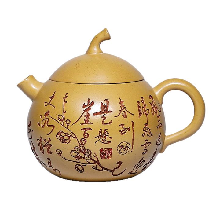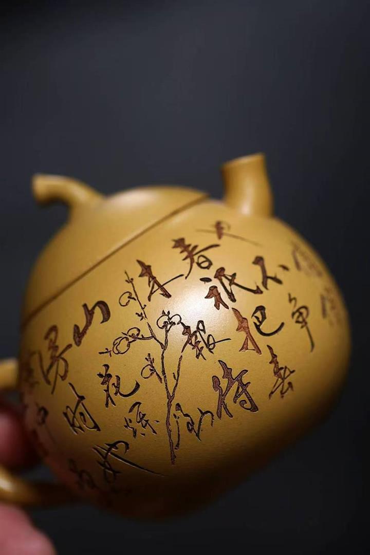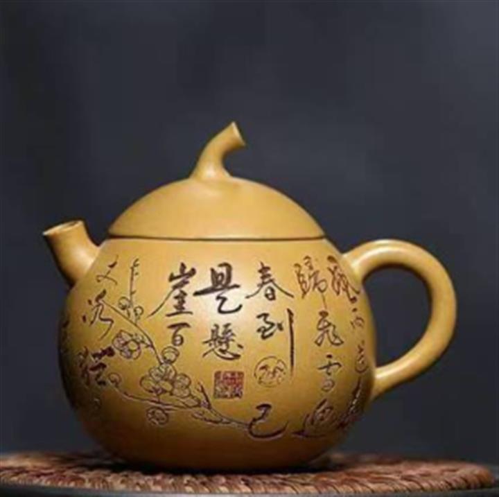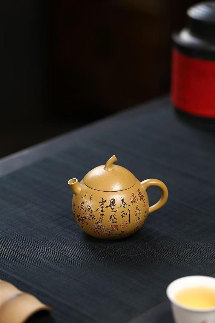 150cc原礦黃金段泥刻繪茄瓜茶壺POT8579