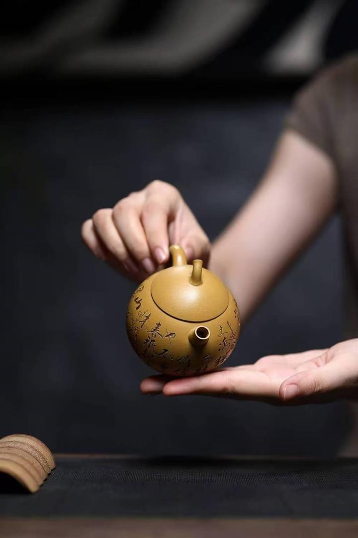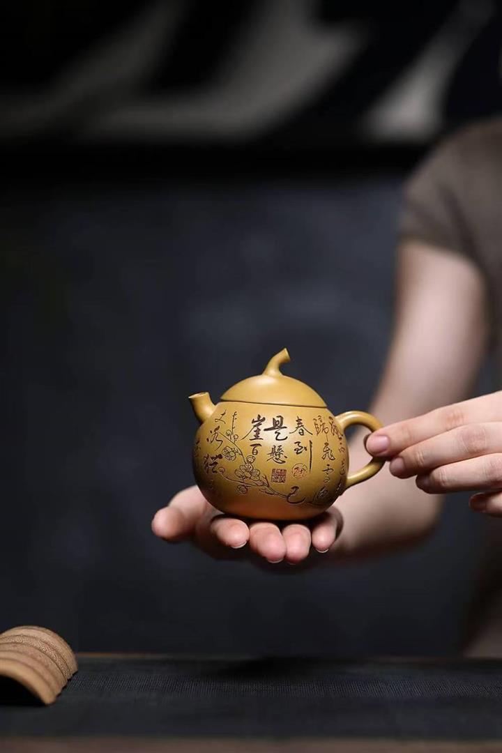 【作品介紹】此款壺形線條流暢,壺把,壺嘴,壺身壹氣呵成栩栩如生,是收藏把玩的好壺,泥料色澤古樸典雅,日久使用,漸露鋒芒,養成變化快,溫潤莊重,用其泡茶,使用的年代久,壺身就溫潤,泡出來的茶湯也就醇郁芳馨。