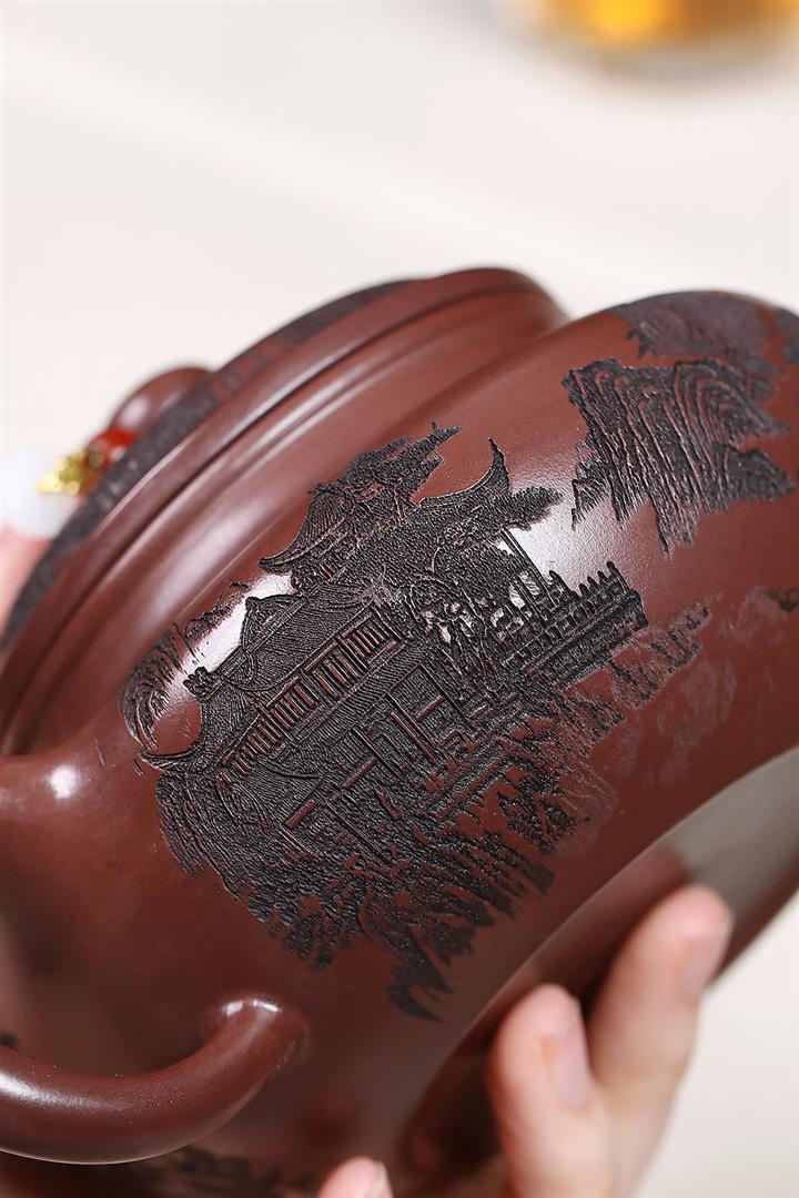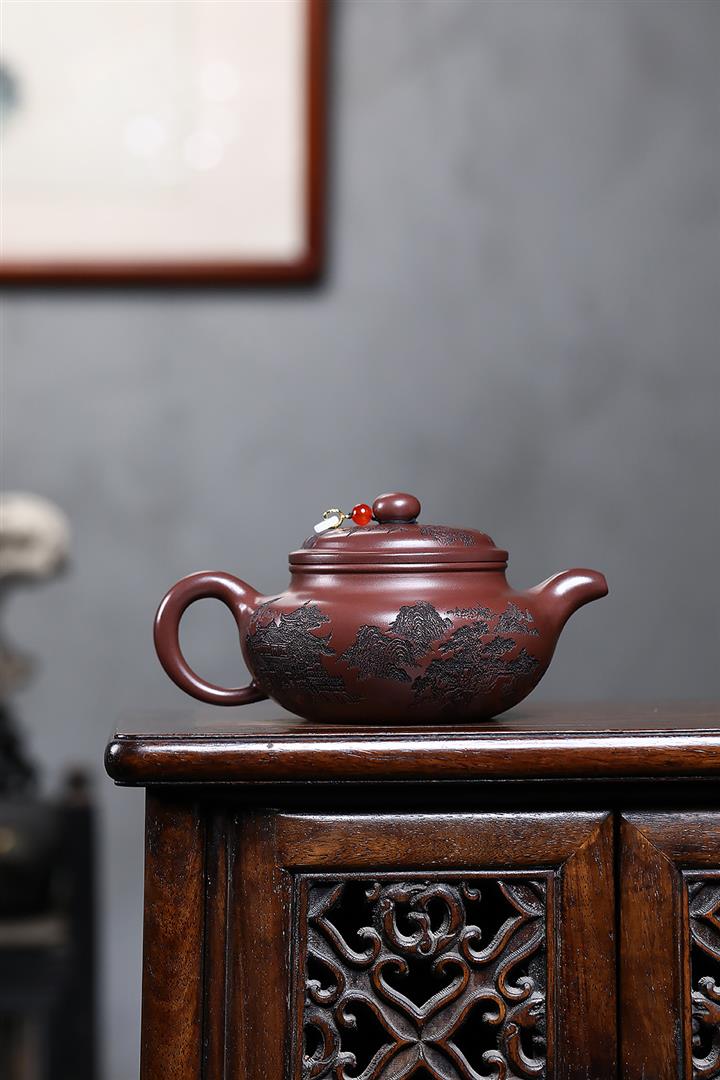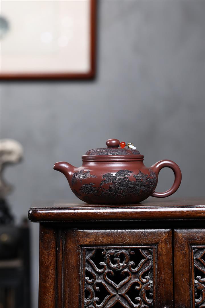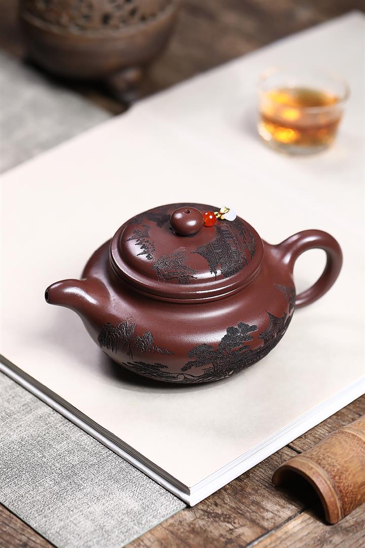365cc原礦紫泥刻繪山水仿古茶壺POT8580