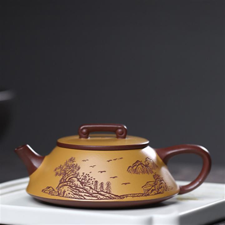 【作品介紹】此款壺形線條流暢,壺把,壺嘴,壺身壹氣呵成栩栩如生,是收藏把玩的好壺,泥料色澤古樸典雅,日久使用,漸露鋒芒,養成變化快,溫潤莊重,用其泡茶,使用的年代久,壺身就溫潤,泡出來的茶湯也就醇郁芳馨。