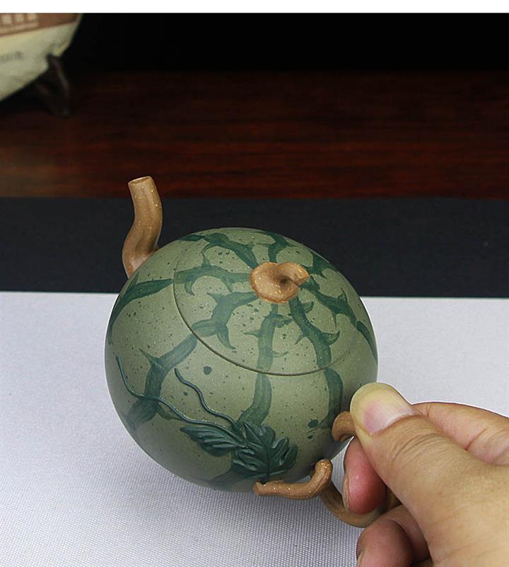 290cc原礦豆青泥套裝西瓜茶壺POT8584