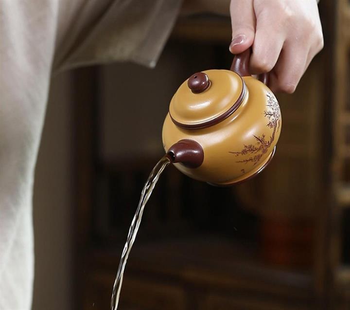 【泥料特點】砂土氣重,似淳實農民,日久使用,漸露鋒芒,養成變化,溫潤莊重。紫砂是壹種雙重氣孔結構的多孔性材質,氣孔微細,密度高。用紫砂壺沏茶,不失原味,且香不渙散,得茶之真香真味。紫砂使用越久,壺身色澤越發光亮照人,氣韻溫雅。紫砂壺長久使用器身會因撫摸擦拭,變得越發溫潤光澤。