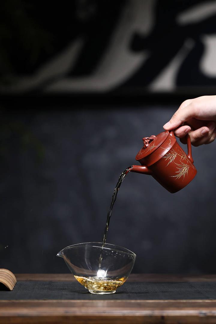 【泥料特點】砂土氣重,似淳實農民,日久使用,漸露鋒芒,養成變化,溫潤莊重。紫砂是壹種雙重氣孔結構的多孔性材質,氣孔微細,密度高。用紫砂壺沏茶,不失原味,且香不渙散,得茶之真香真味。紫砂使用越久,壺身色澤越發光亮照人,氣韻溫雅。紫砂壺長久使用器身會因撫摸擦拭,變得越發溫潤光澤。