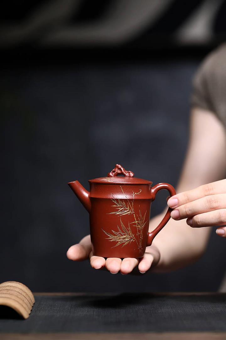 200cc原礦朱泥竹節太湖石茶壺POT8600