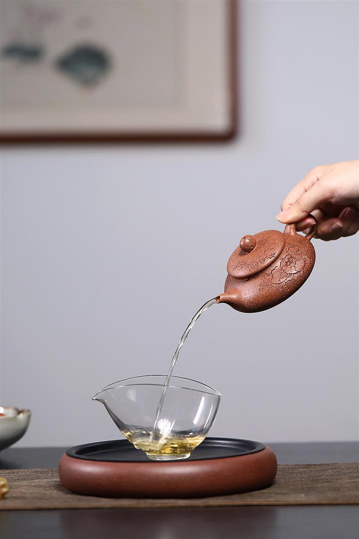 【泥料特點】砂土氣重,似淳實農民,日久使用,漸露鋒芒,養成變化,溫潤莊重。紫砂是壹種雙重氣孔結構的多孔性材質,氣孔微細,密度高。用紫砂壺沏茶,不失原味,且香不渙散,得茶之真香真味。紫砂使用越久,壺身色澤越發光亮照人,氣韻溫雅。紫砂壺長久使用器身會因撫摸擦拭,變得越發溫潤光澤。