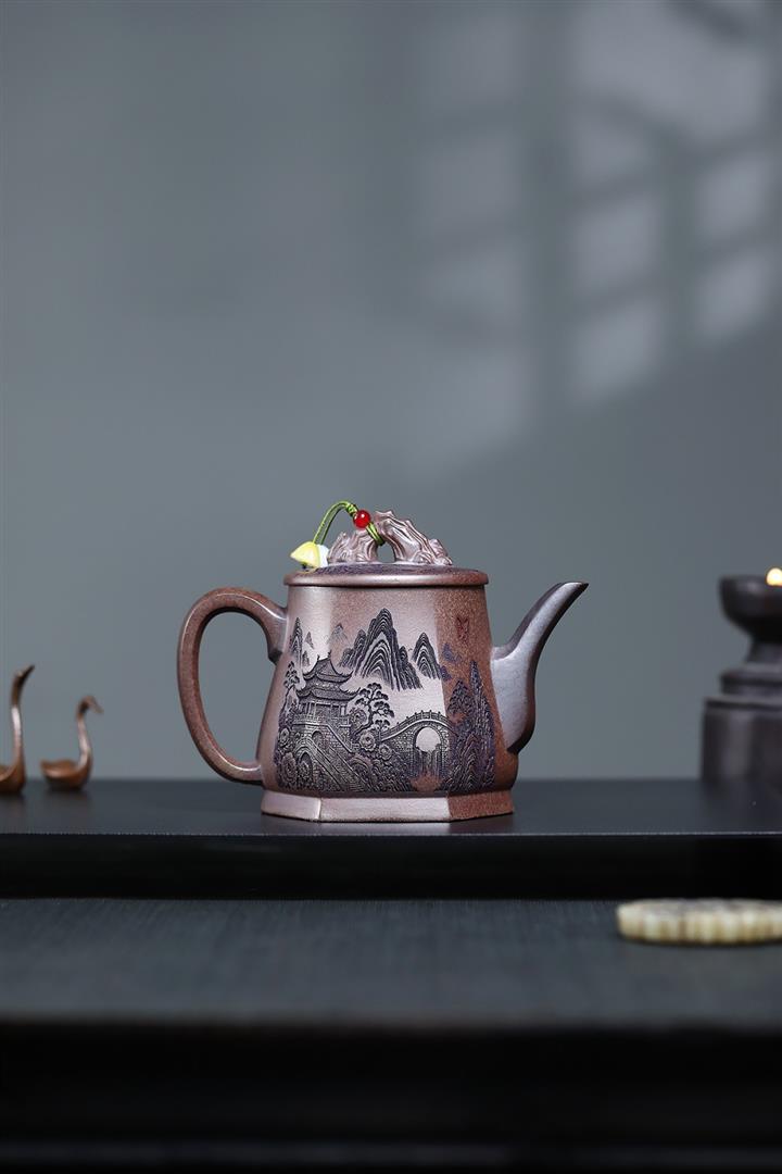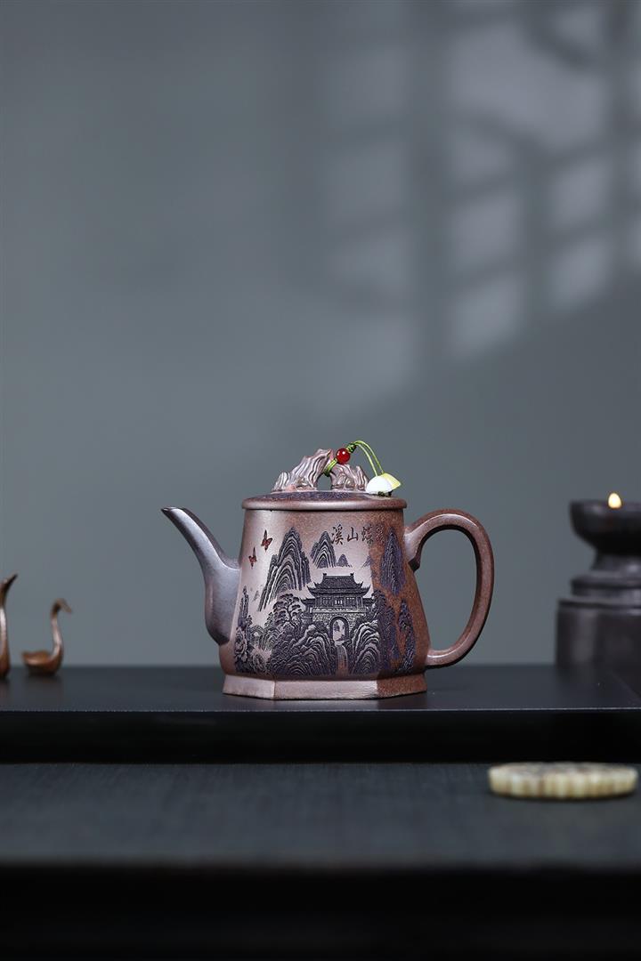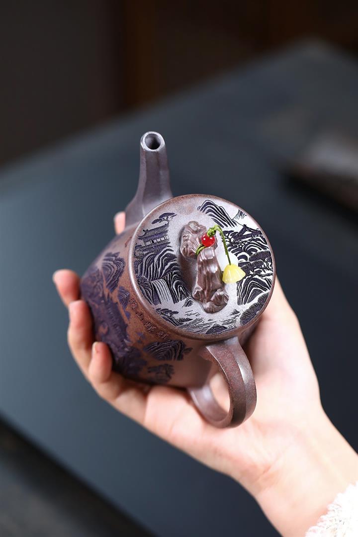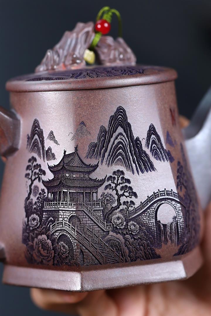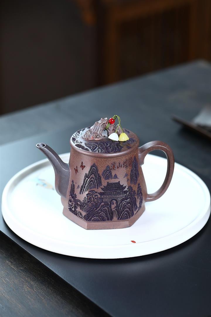 400cc原礦紫泥刻繪山水仿古茶壺POT8616