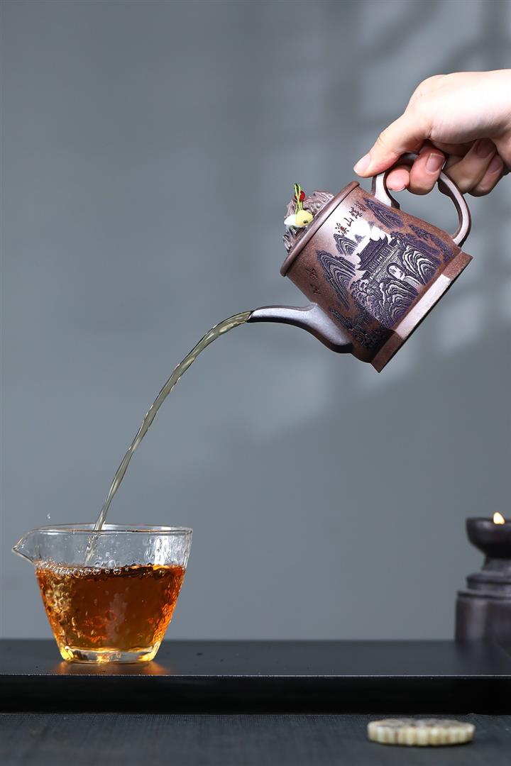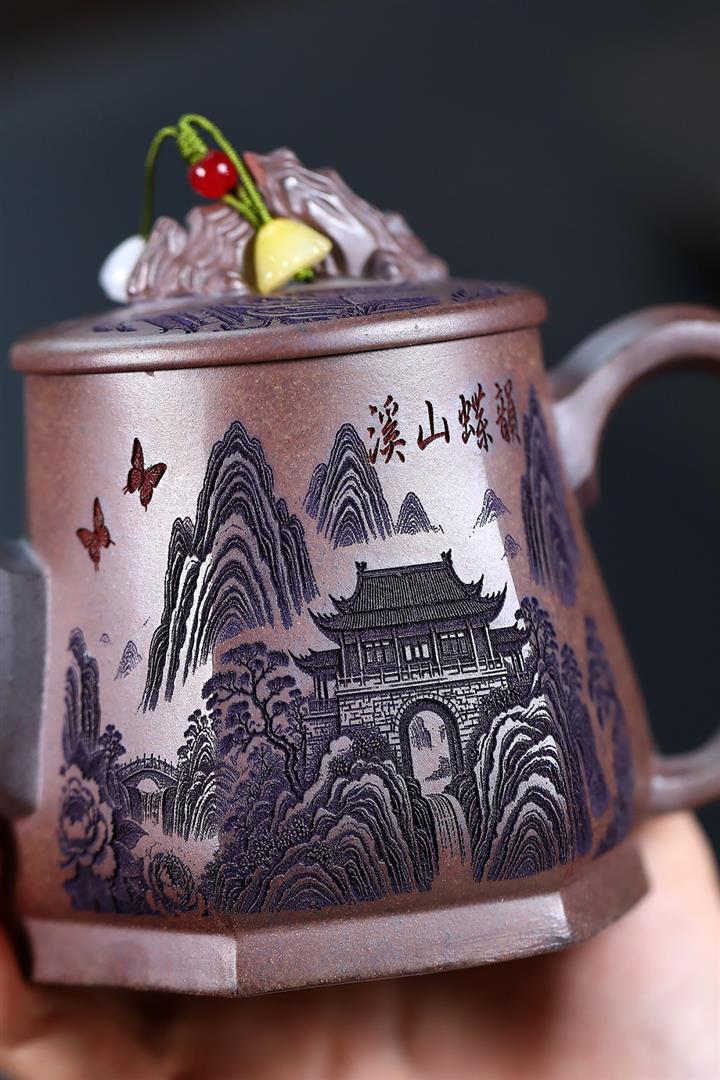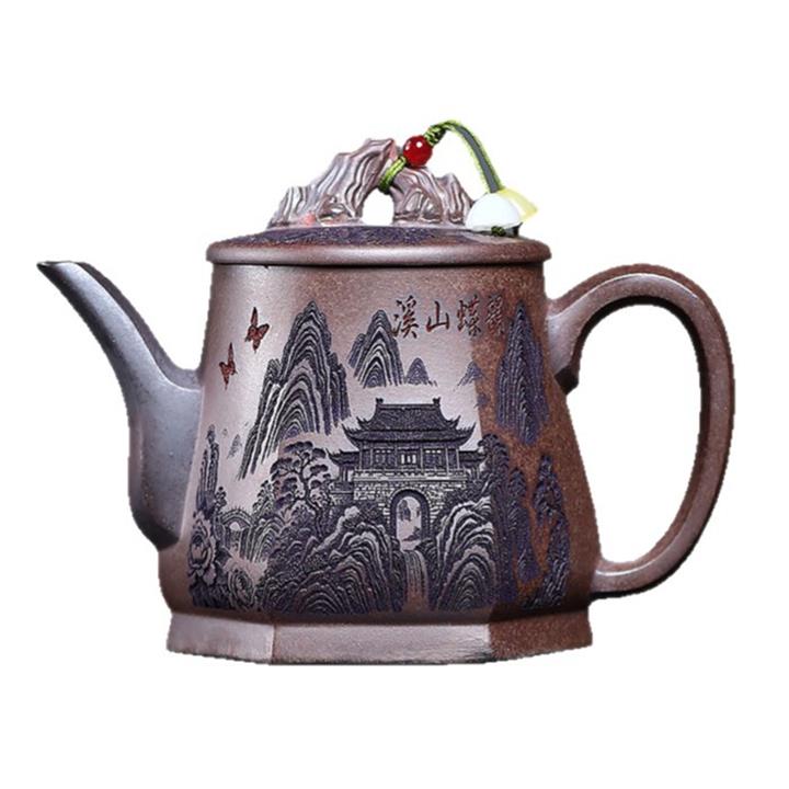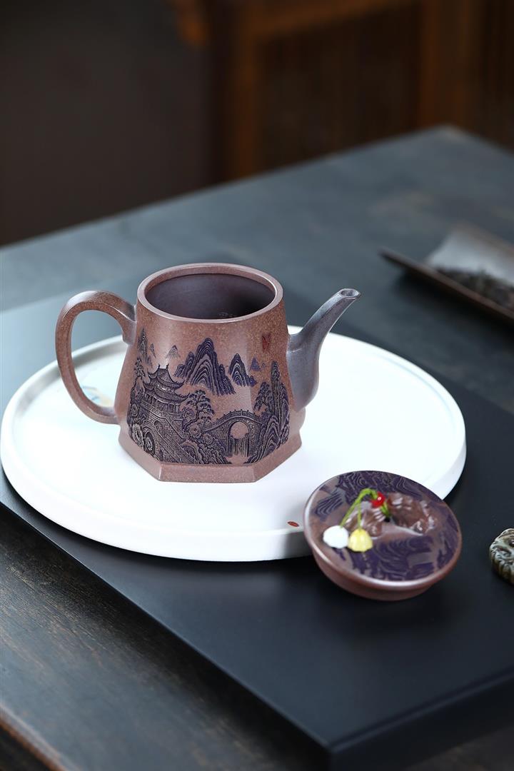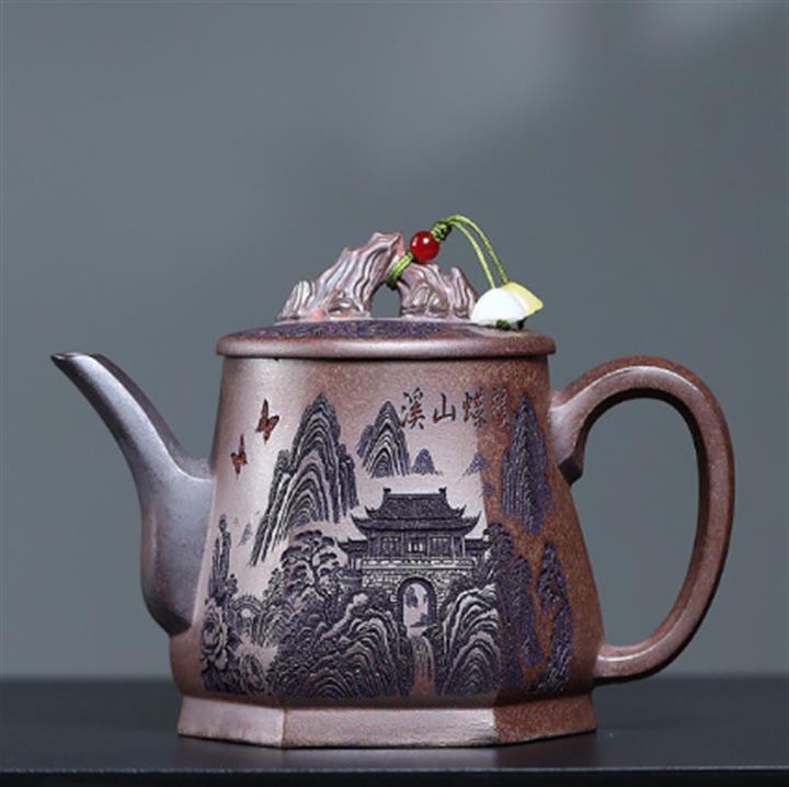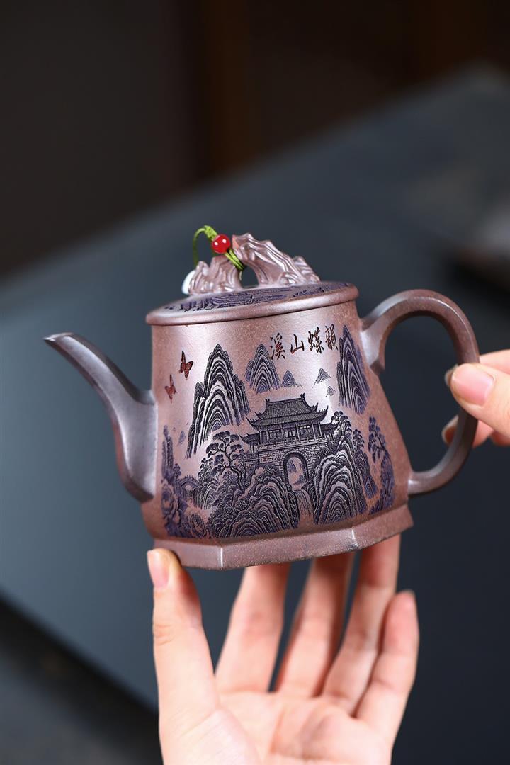 400cc原礦紫泥刻繪山水仿古茶壺POT8616