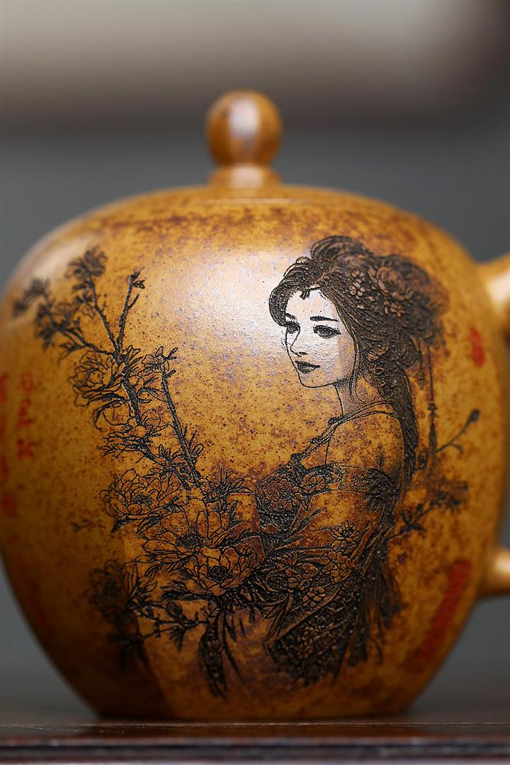 【作品介紹】此款壺形線條流暢,壺把,壺嘴,壺身壹氣呵成栩栩如生,是收藏把玩的好壺,泥料色澤古樸典雅,日久使用,漸露鋒芒,養成變化快,溫潤莊重,用其泡茶,使用的年代久,壺身就溫潤,泡出來的茶湯也就醇郁芳馨。