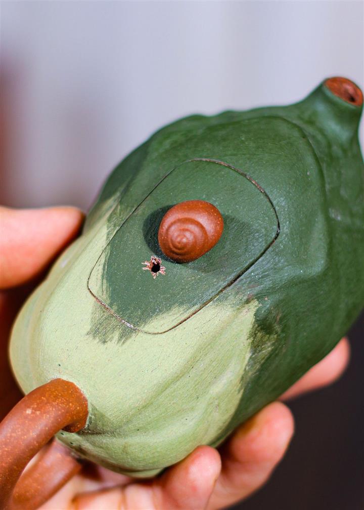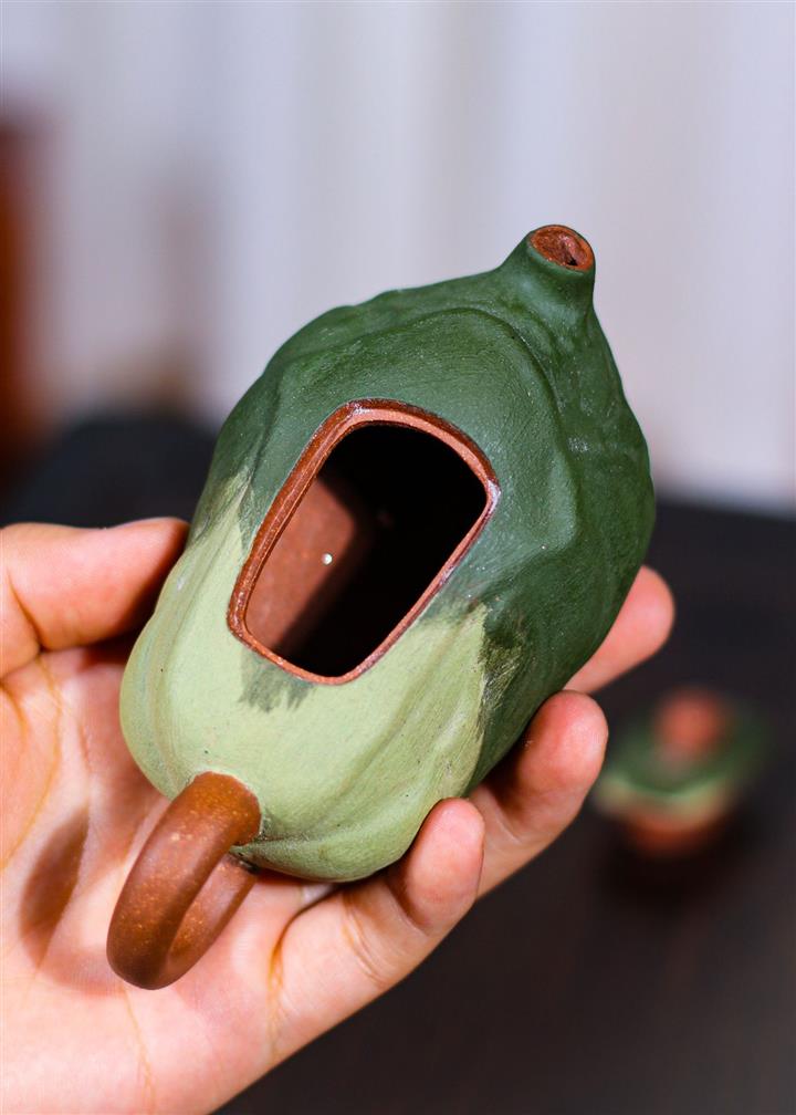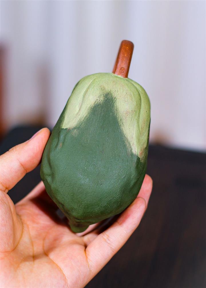 250cc原礦綠泥福祿同春茄瓜茶壺POT8640