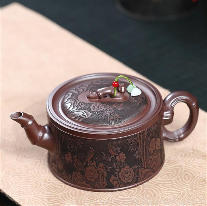 530cc原礦石紅泥春色滿園竹段茶壺POT8645