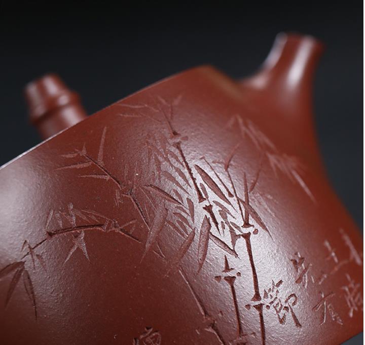 530cc原礦石紅泥春色滿園竹段茶壺POT8645