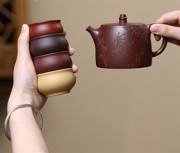 250cc原礦紫泥漢鐸茶具套裝壹壺四杯公道杯茶具POT8639