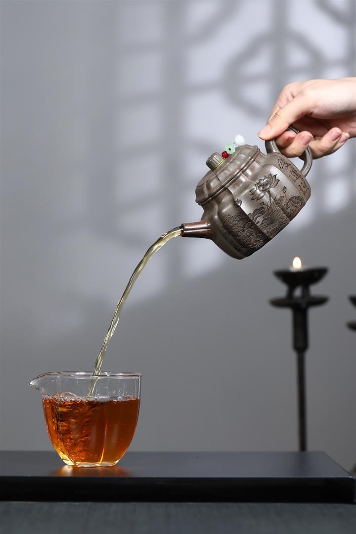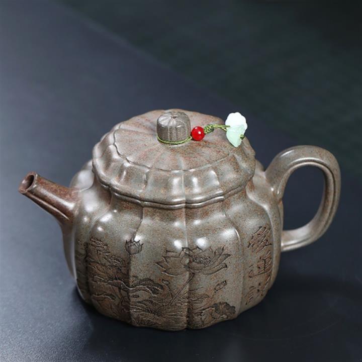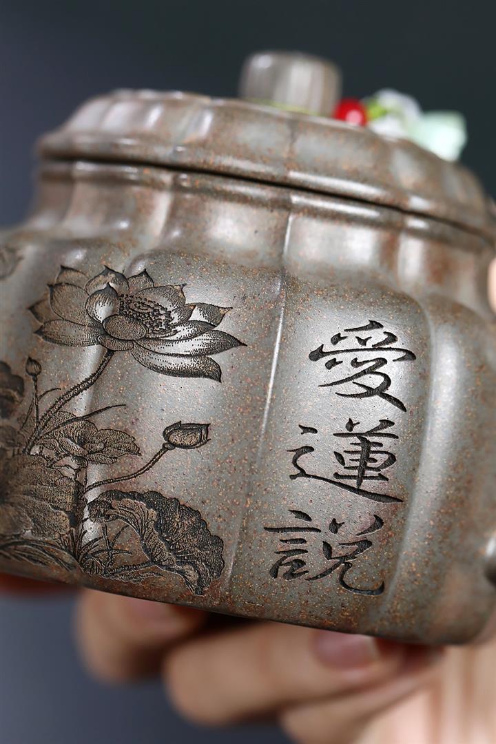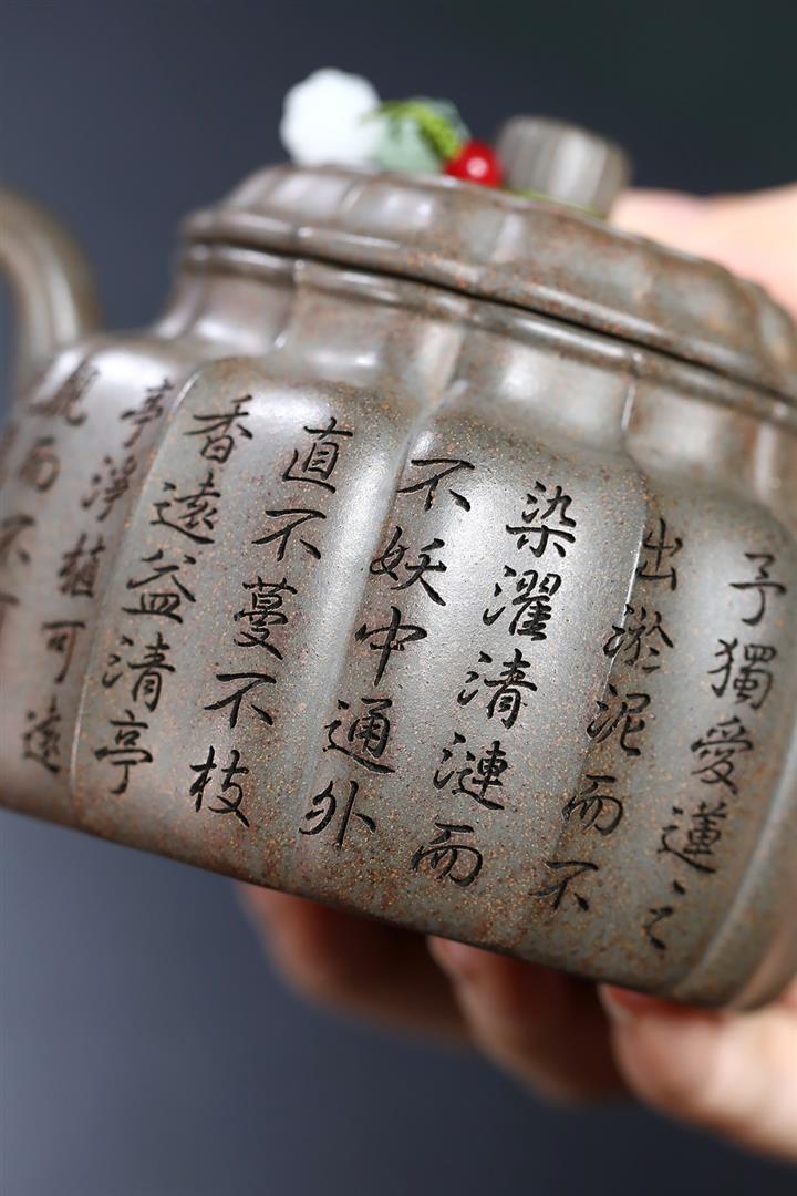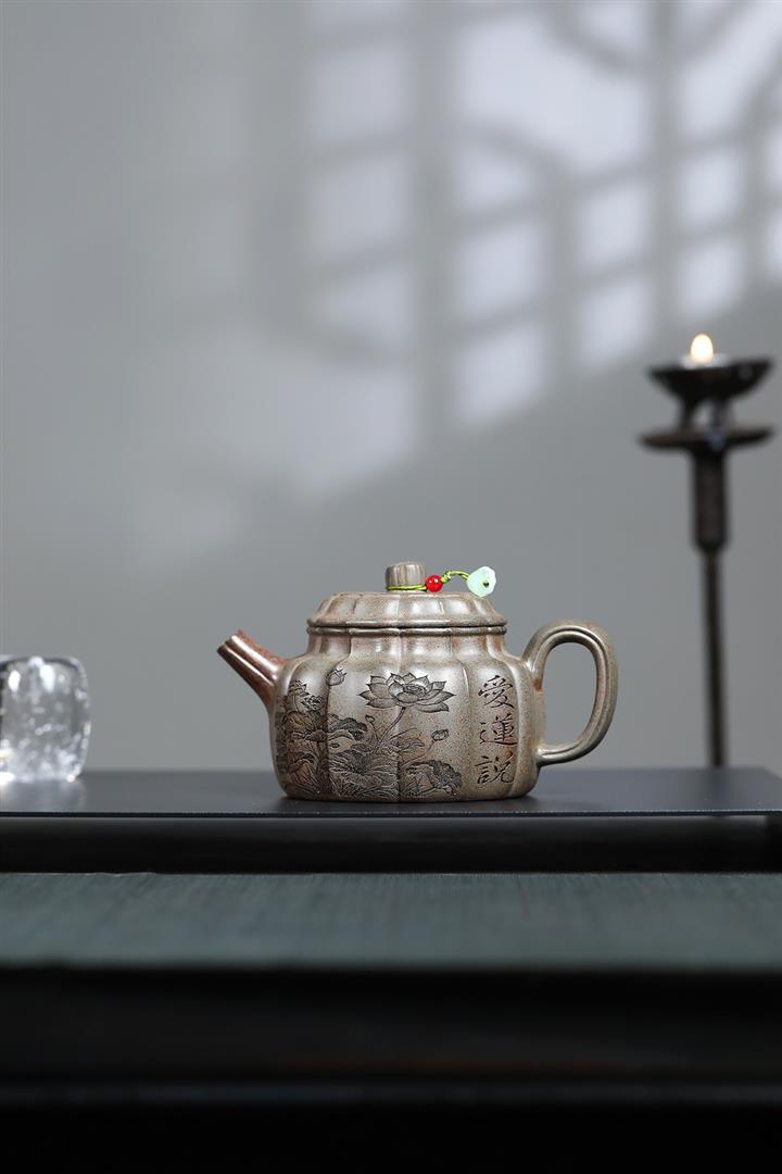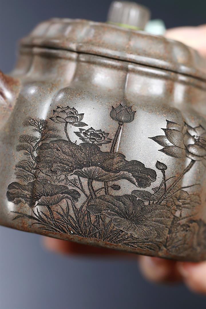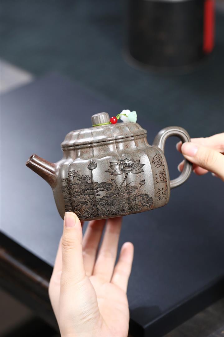 280cc原礦百目紫泥曲壺荷塘月色茶壺POT8654