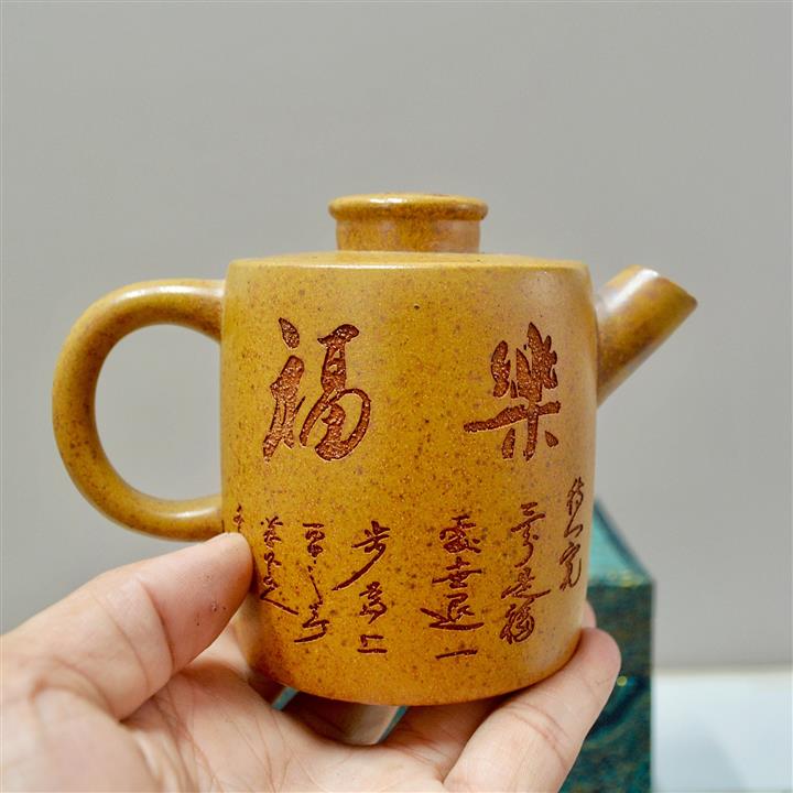 【作品介紹】此款壺形線條流暢,壺把,壺嘴,壺身壹氣呵成栩栩如生,是收藏把玩的好壺,泥料色澤古樸典雅,日久使用,漸露鋒芒,養成變化快,溫潤莊重,用其泡茶,使用的年代久,壺身就溫潤,泡出來的茶湯也就醇郁芳馨。