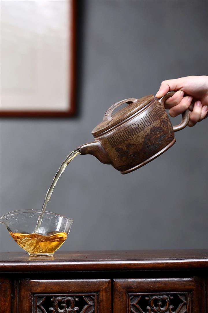 【作品介紹】此款壺形線條流暢,壺把,壺嘴,壺身壹氣呵成栩栩如生,是收藏把玩的好壺,泥料色澤古樸典雅,日久使用,漸露鋒芒,養成變化快,溫潤莊重,用其泡茶,使用的年代久,壺身就溫潤,泡出來的茶湯也就醇郁芳馨。