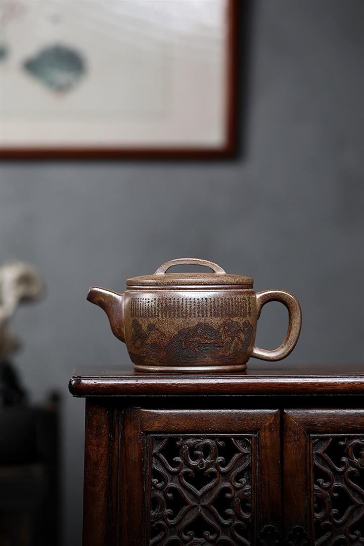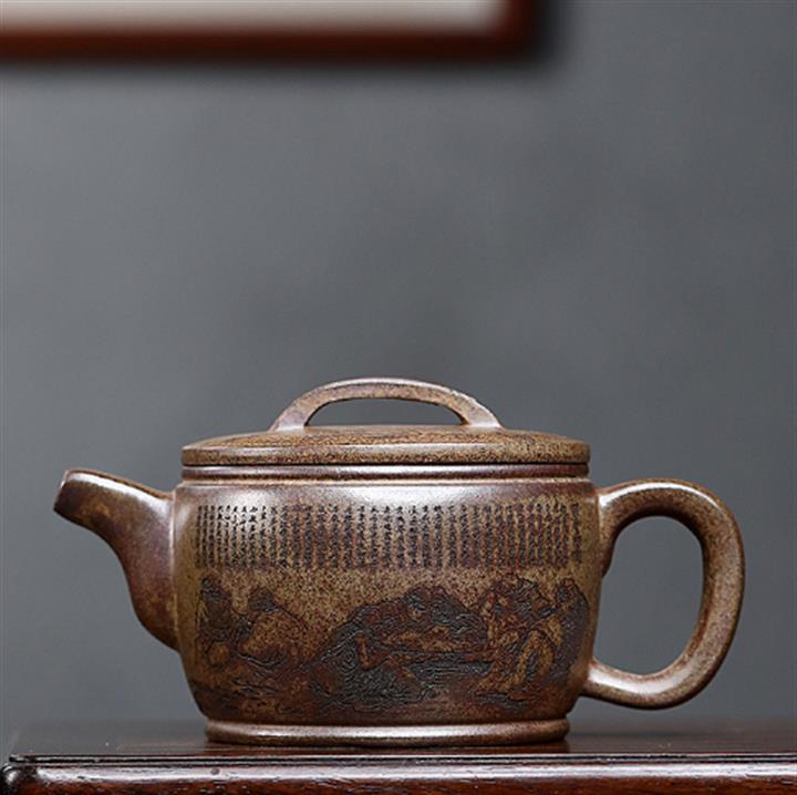 270cc原礦玄鐵石黃荷韻井欄泡茶壺POT8659