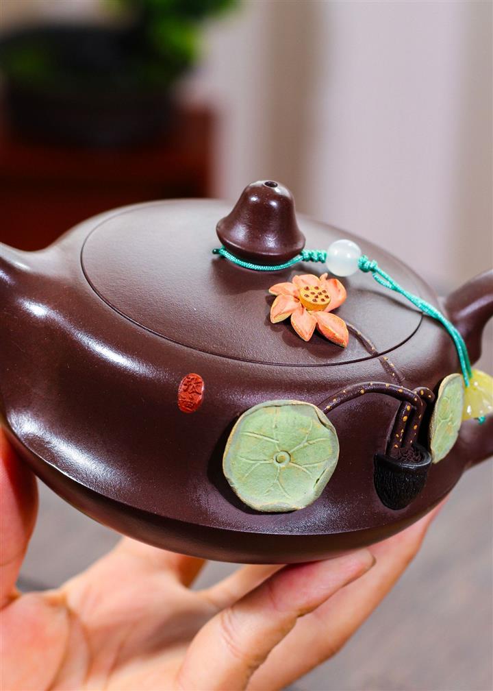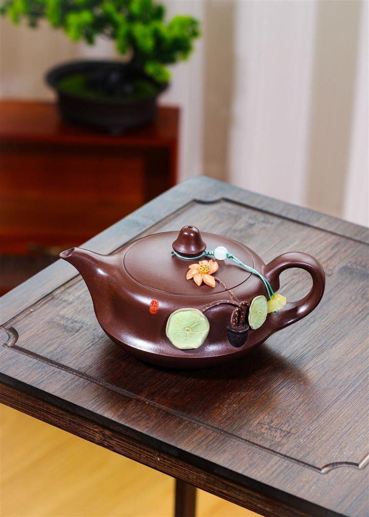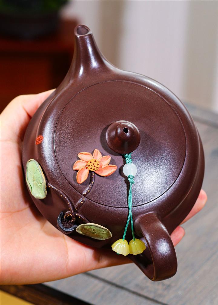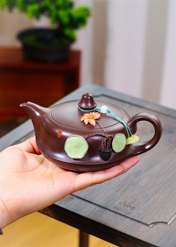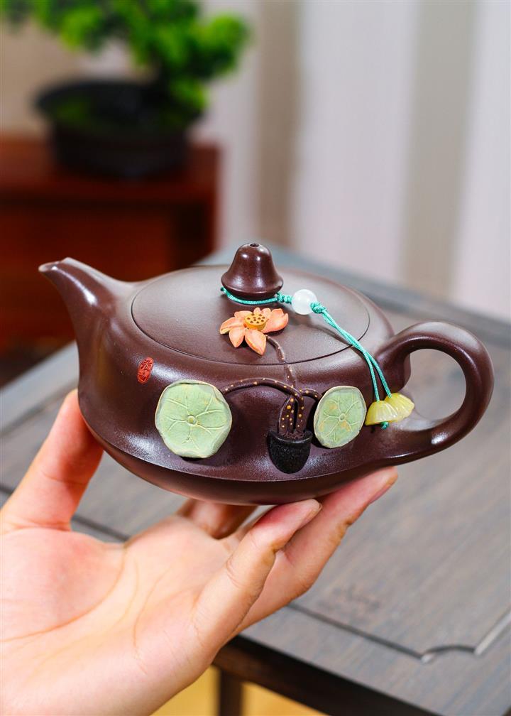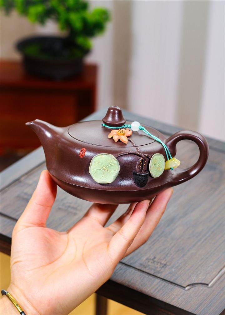 280cc原礦百目紫泥曲壺荷塘月色茶壺POT8654