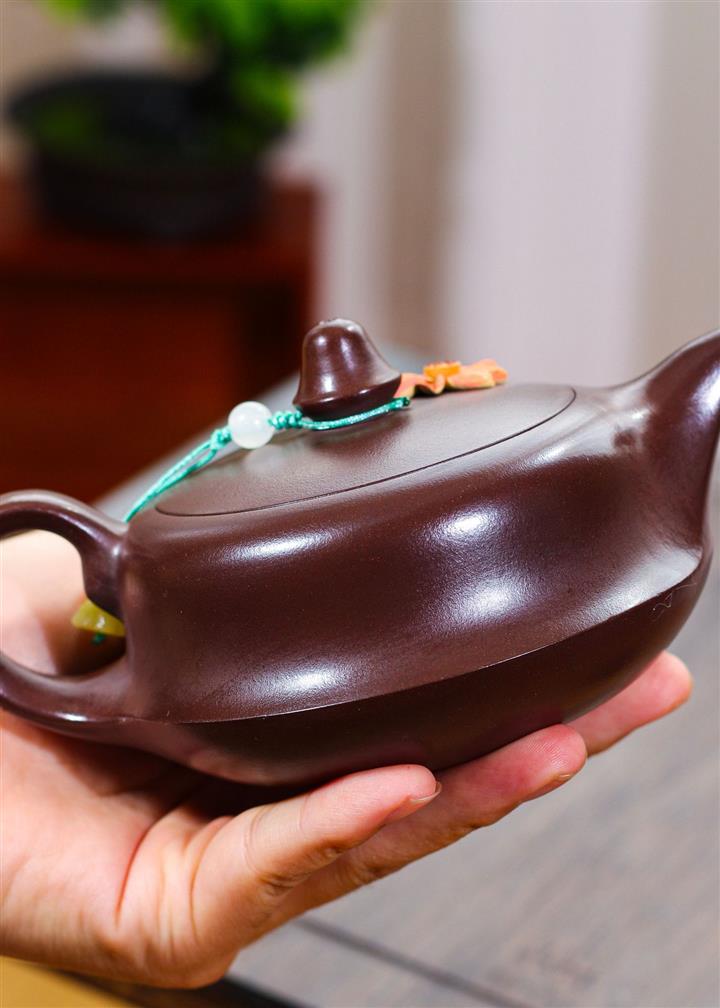 【作品介紹】此款壺形線條流暢,壺把,壺嘴,壺身壹氣呵成栩栩如生,是收藏把玩的好壺,泥料色澤古樸典雅,日久使用,漸露鋒芒,養成變化快,溫潤莊重,用其泡茶,使用的年代久,壺身就溫潤,泡出來的茶湯也就醇郁芳馨。
