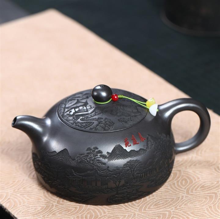 270cc原礦玄鐵石黃荷韻井欄泡茶壺POT8659