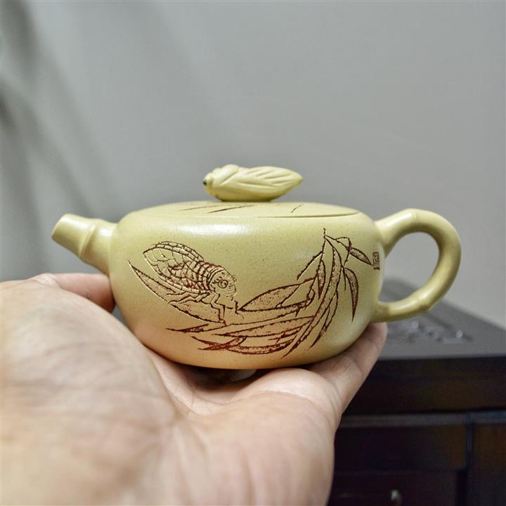 150cc原礦本山綠泥禪緣竹福泡茶壺POT8663