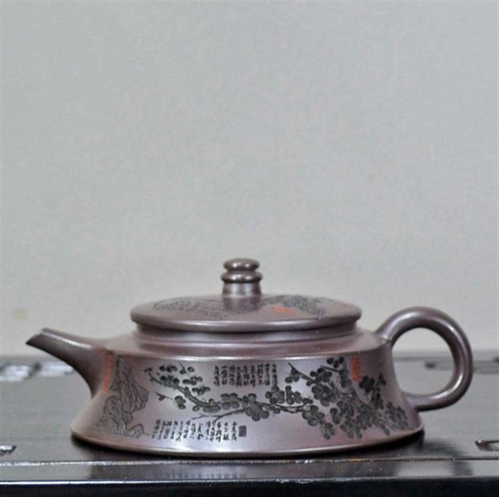 【泥料特點】砂土氣重,似淳實農民,日久使用,漸露鋒芒,養成變化,溫潤莊重。紫砂是壹種雙重氣孔結構的多孔性材質,氣孔微細,密度高。用紫砂壺沏茶,不失原味,且香不渙散,得茶之真香真味。紫砂使用越久,壺身色澤越發光亮照人,氣韻溫雅。紫砂壺長久使用器身會因撫摸擦拭,變得越發溫潤光澤。