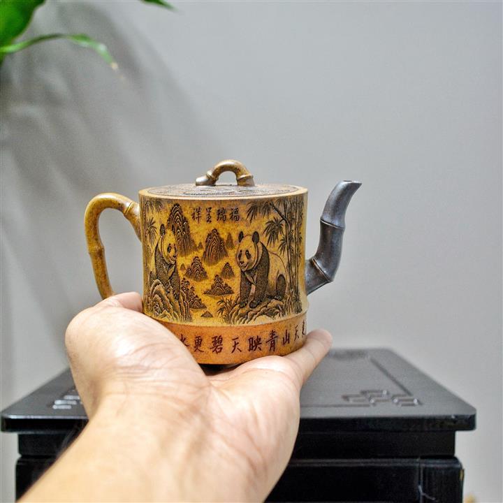 230cc原礦高溫段泥熊貓竹節泡茶壺POT8672