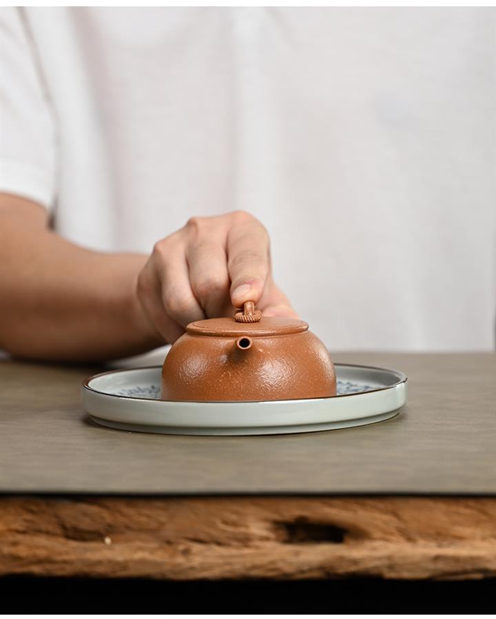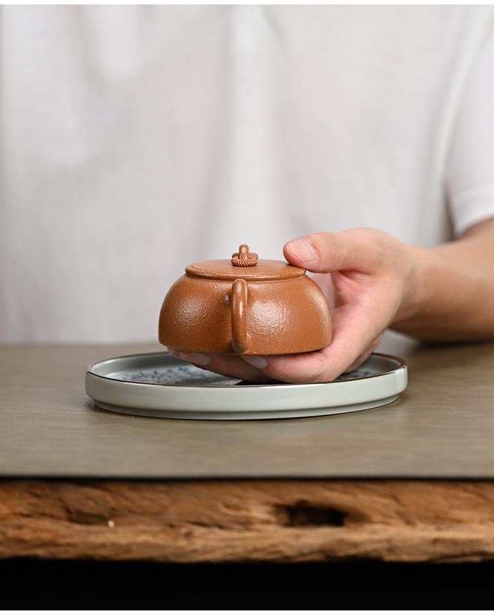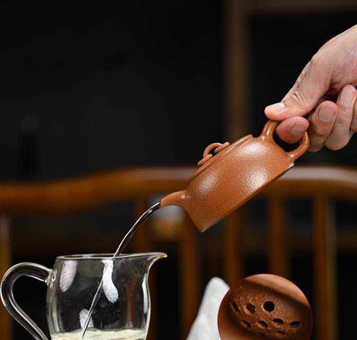 【泥料特點】砂土氣重,似淳實農民,日久使用,漸露鋒芒,養成變化,溫潤莊重。紫砂是壹種雙重氣孔結構的多孔性材質,氣孔微細,密度高。用紫砂壺沏茶,不失原味,且香不渙散,得茶之真香真味。紫砂使用越久,壺身色澤越發光亮照人,氣韻溫雅。紫砂壺長久使用器身會因撫摸擦拭,變得越發溫潤光澤。