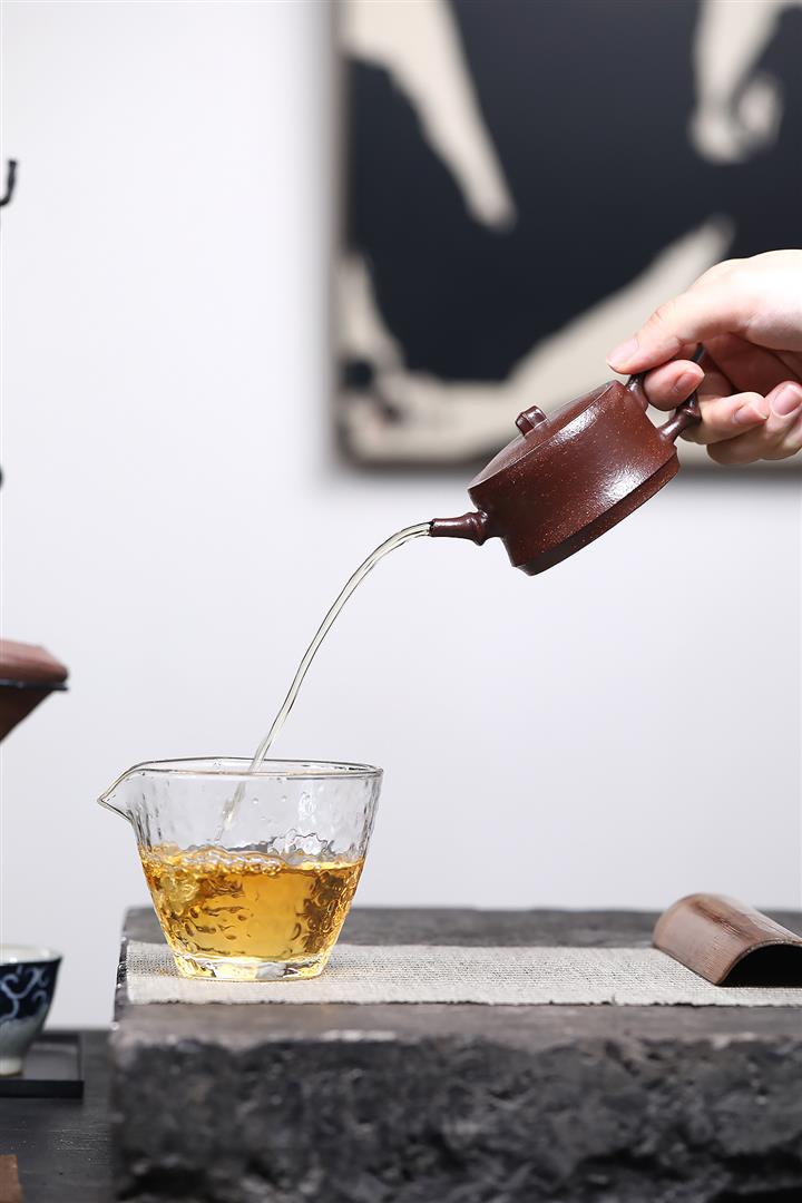 【泥料特點】砂土氣重,似淳實農民,日久使用,漸露鋒芒,養成變化,溫潤莊重。紫砂是壹種雙重氣孔結構的多孔性材質,氣孔微細,密度高。用紫砂壺沏茶,不失原味,且香不渙散,得茶之真香真味。紫砂使用越久,壺身色澤越發光亮照人,氣韻溫雅。紫砂壺長久使用器身會因撫摸擦拭,變得越發溫潤光澤。