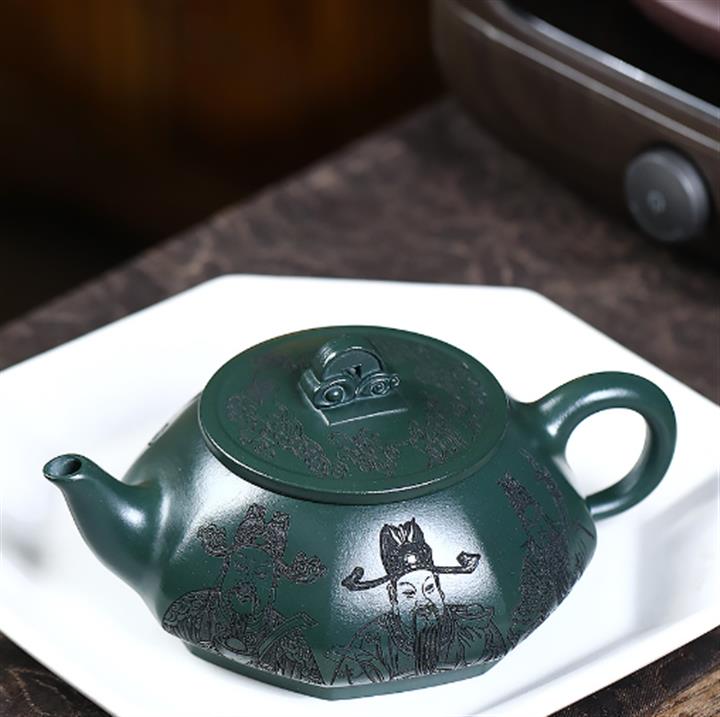 340cc原礦綠泥貝殼燒八方來財茶壺POT8720