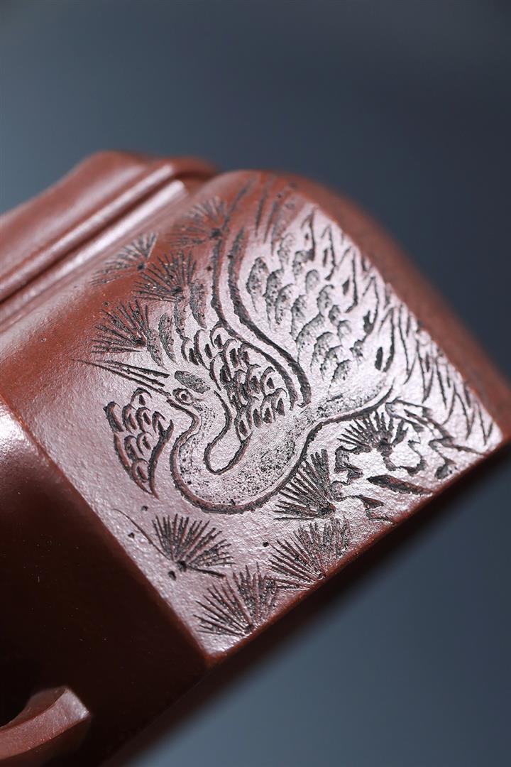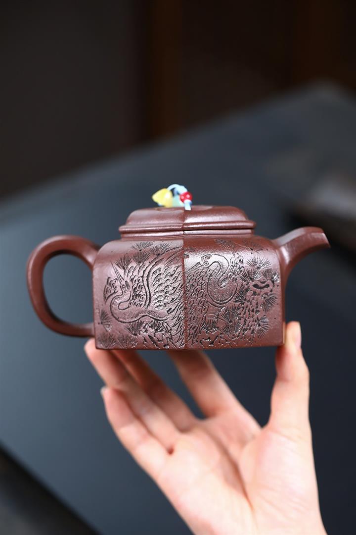 340cc原礦紫泥方骨鶴心牛蓋蓮子茶壺POT8735