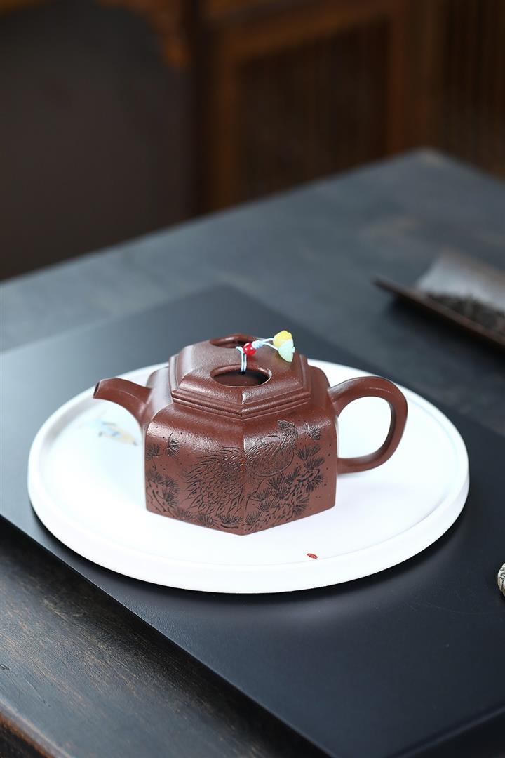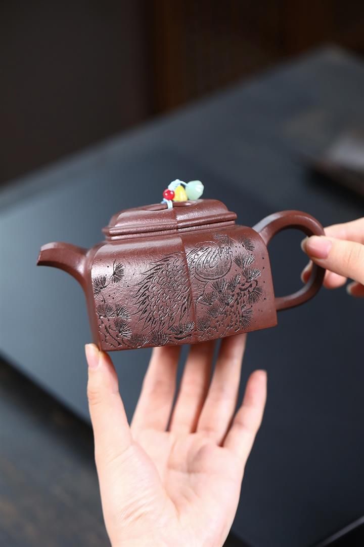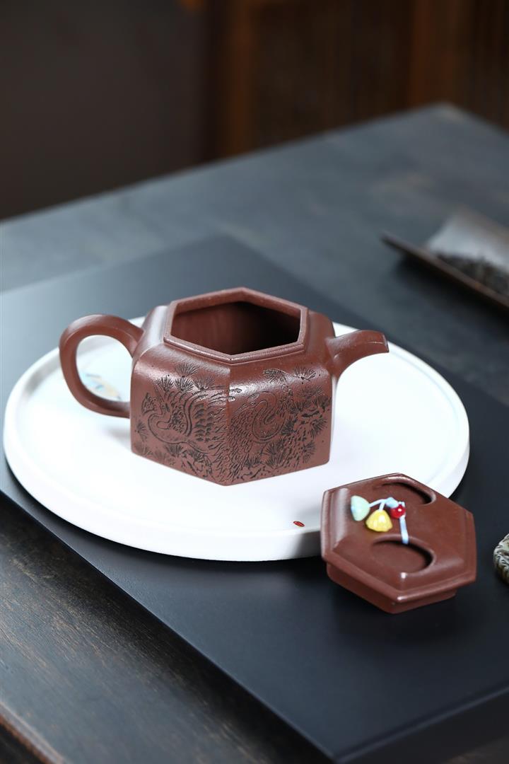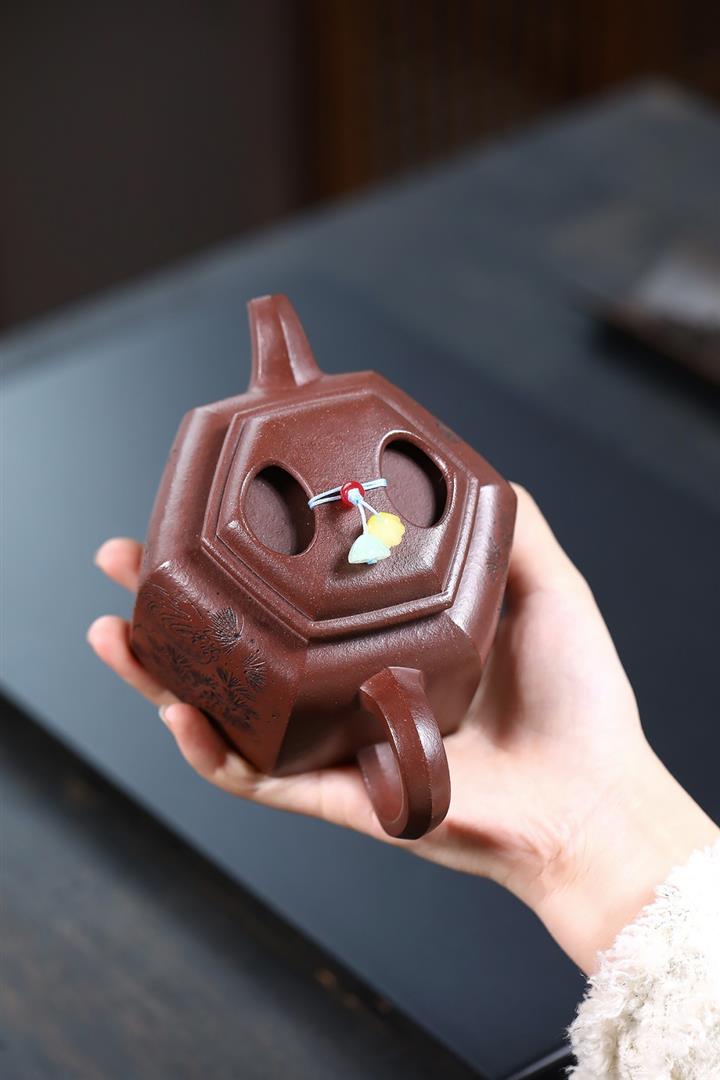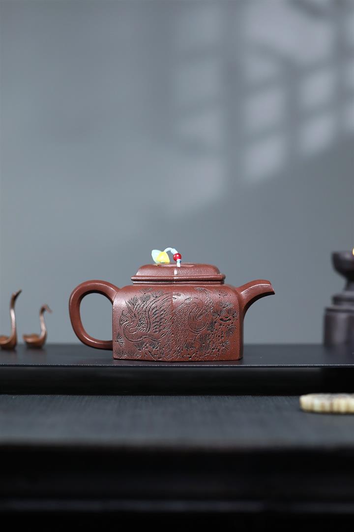 500cc原礦古紅泥鏤空遊龍戲鳳泡茶壺POT8738