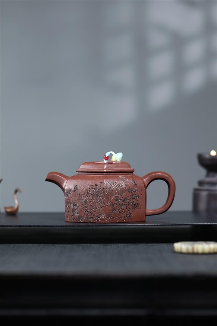 110cc原礦雞血大紅袍喜上枝頭汲直茶壺POT8743