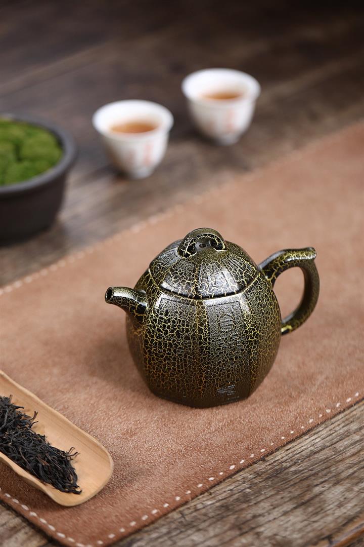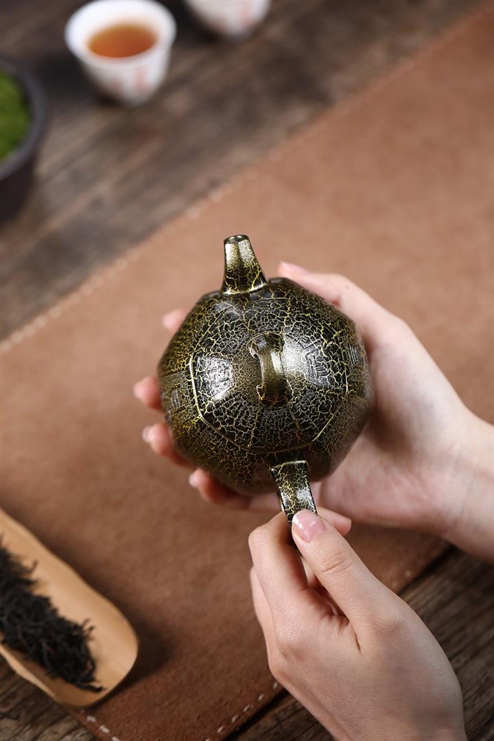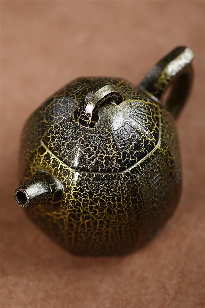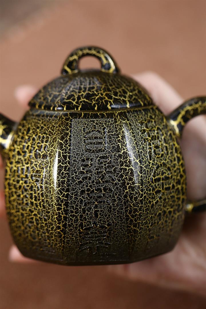 280cc原礦紫泥蛇紋鎏金八方秦權泡茶壺POT8739