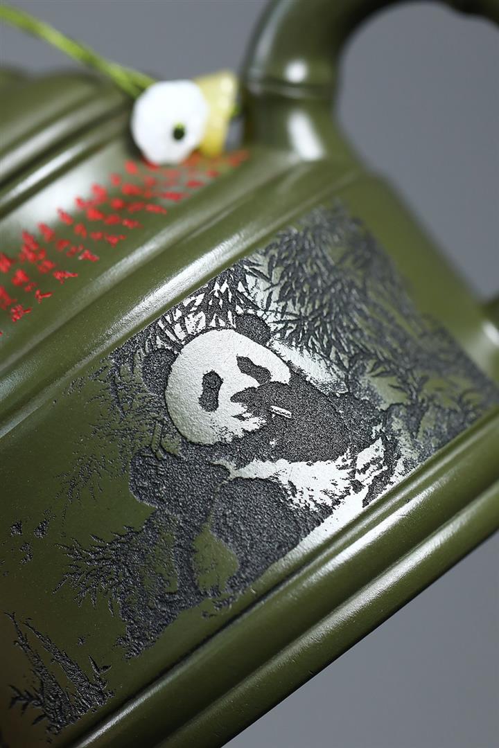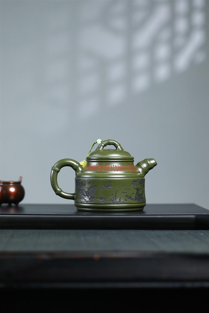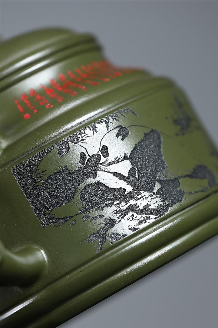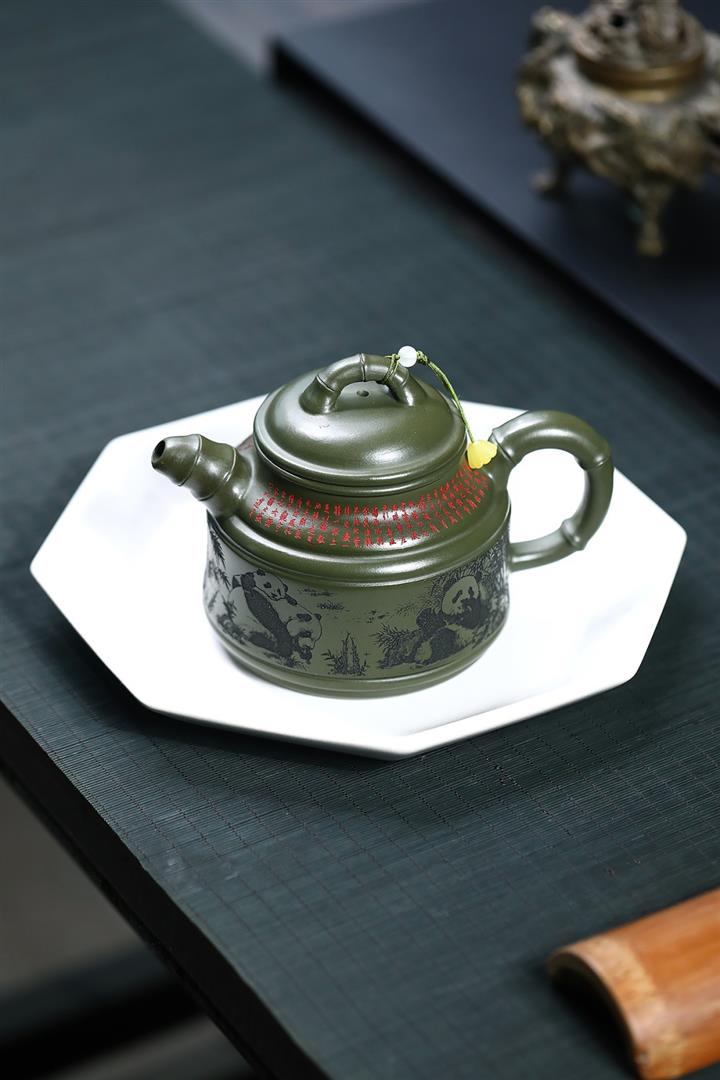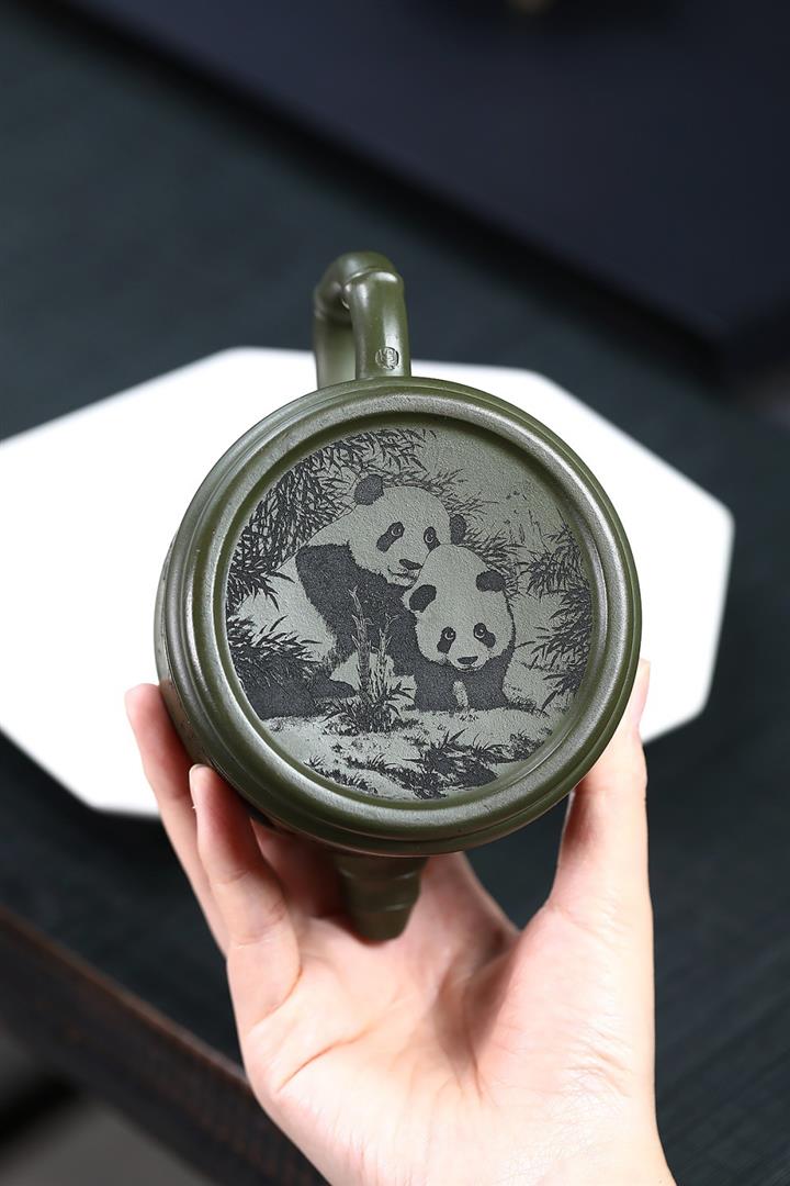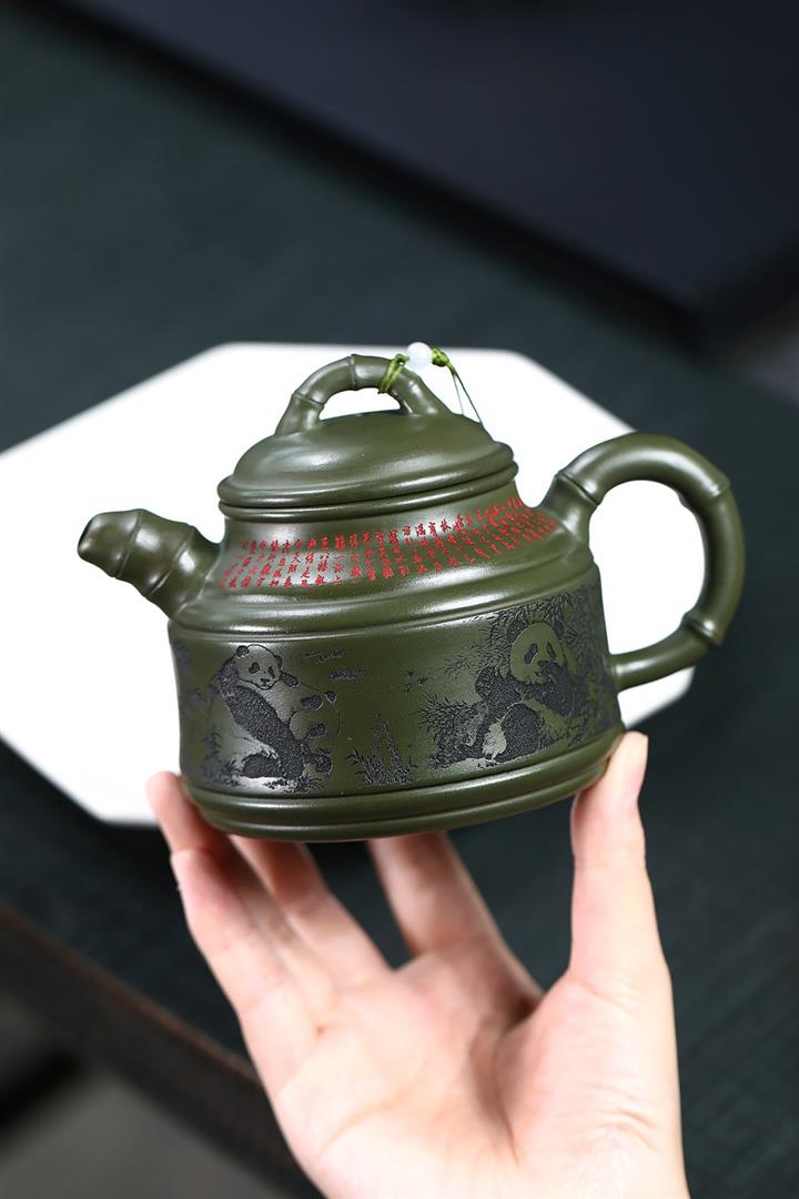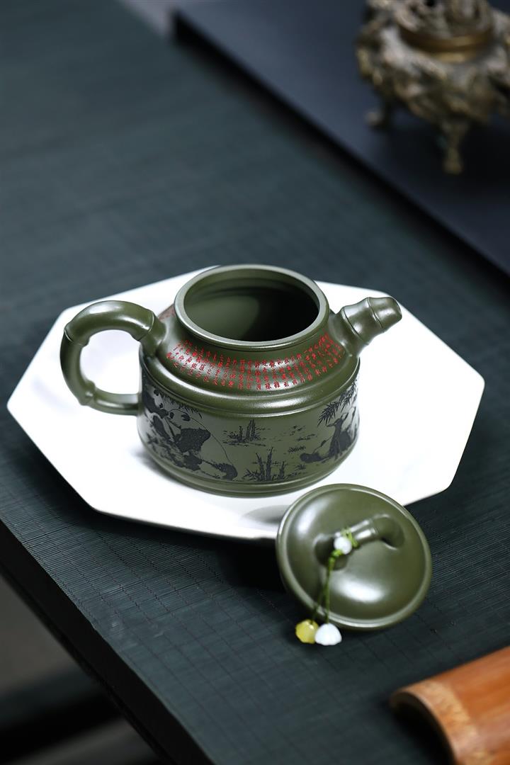 400cc原礦綠泥竹鼎熊韻茶壺POT8747