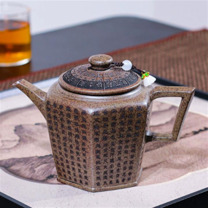 270cc原礦段泥柴燒六方宮燈手刻心經茶壺POT8756