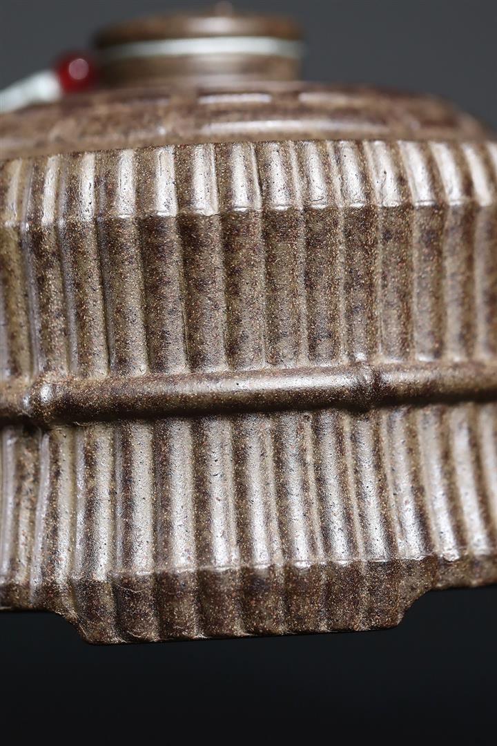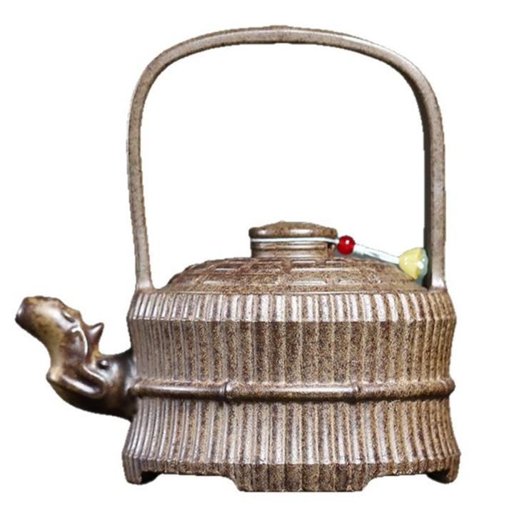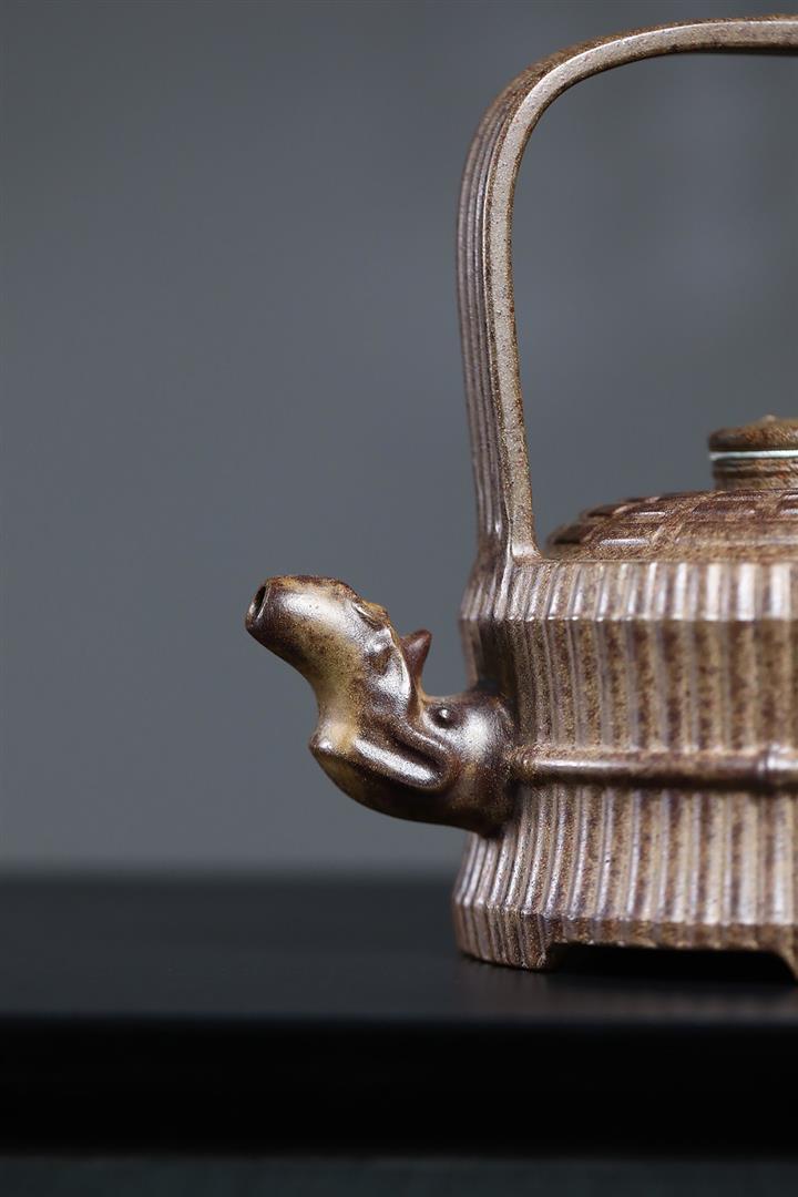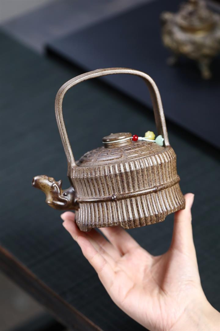 380cc原礦沈香泥柴燒縛竹提梁大茶壺POT8751