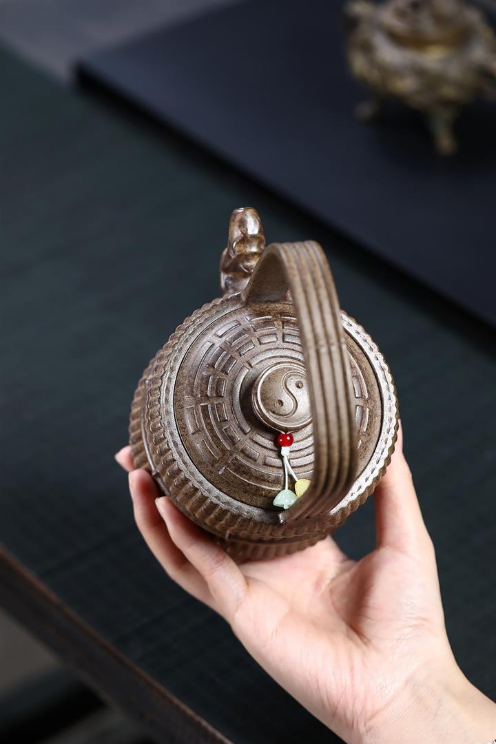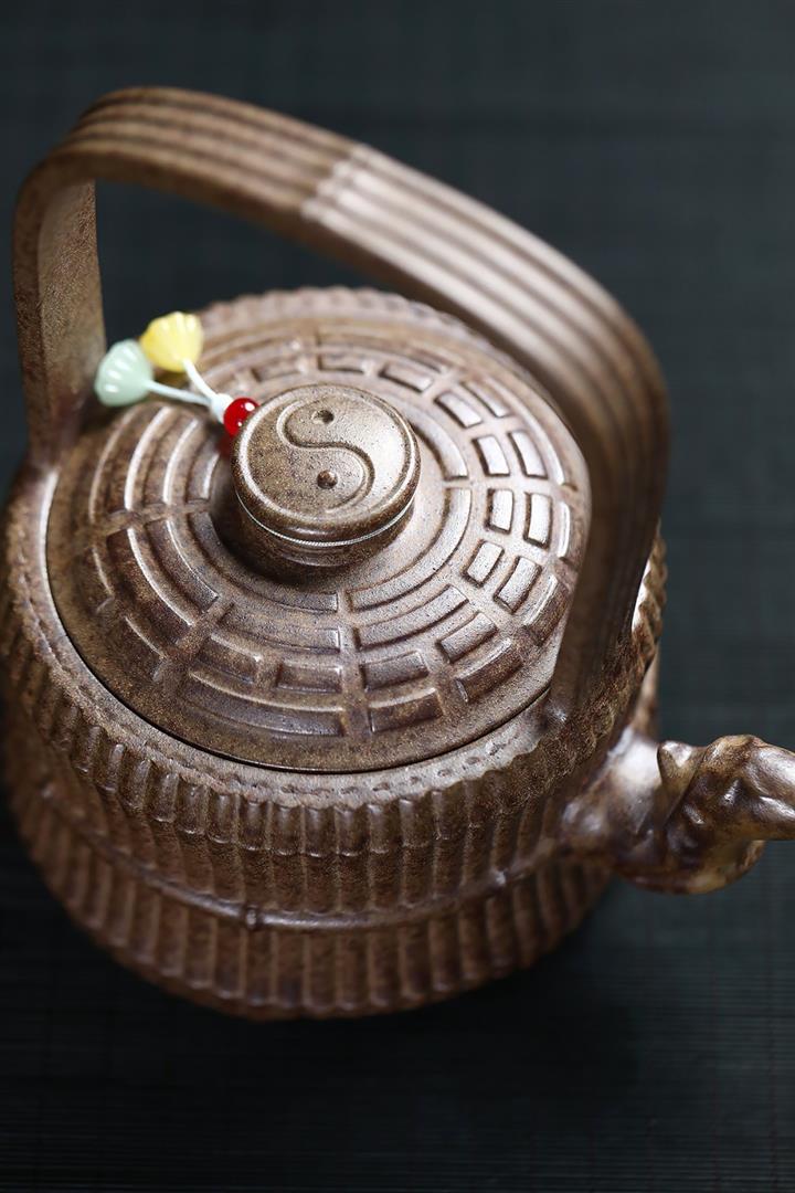 400cc原礦清水泥陶刻松影曲梁提梁茶壺POT8753