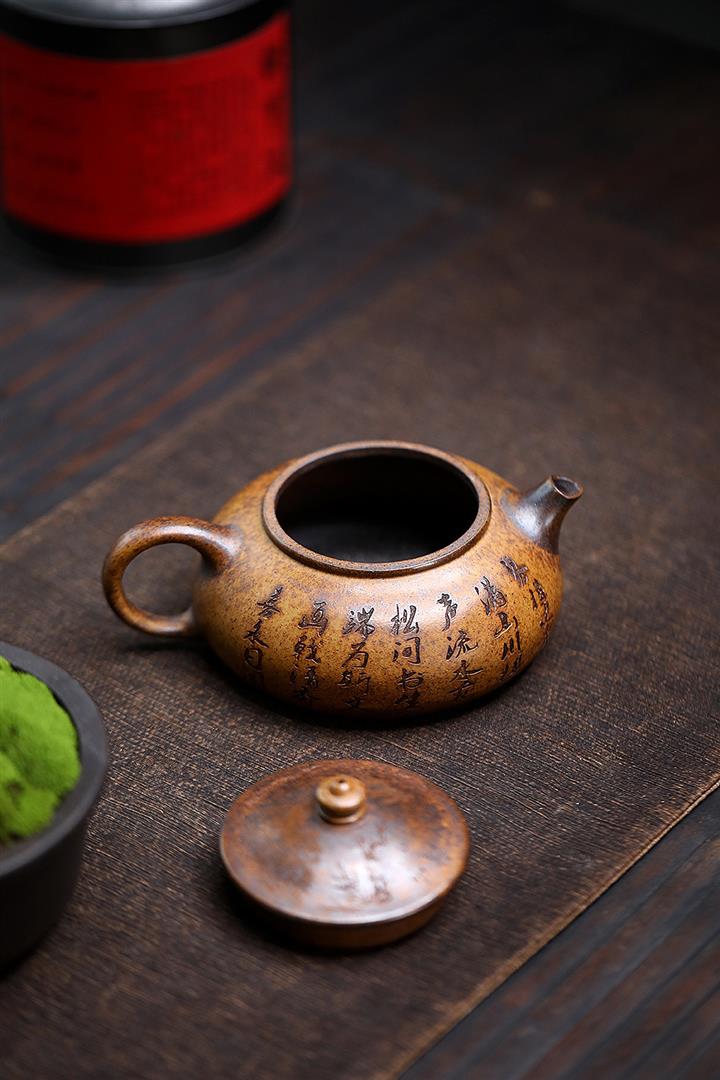340cc原礦大紅袍平蓋仿古茶壺POT8781