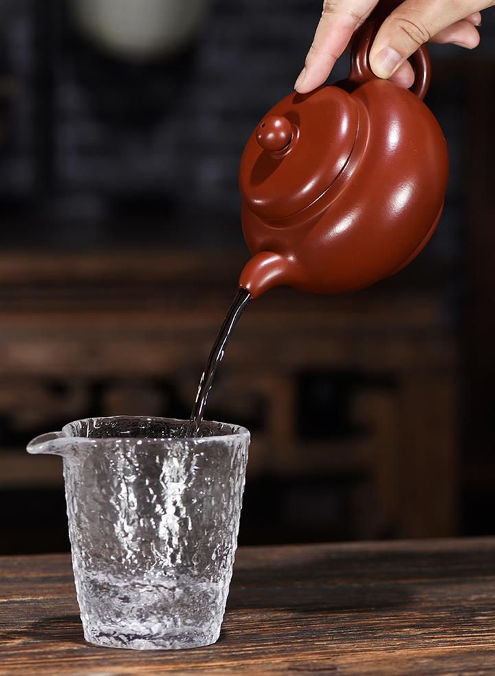 【泥料特點】砂土氣重,似淳實農民,日久使用,漸露鋒芒,養成變化,溫潤莊重。紫砂是壹種雙重氣孔結構的多孔性材質,氣孔微細,密度高。用紫砂壺沏茶,不失原味,且香不渙散,得茶之真香真味。紫砂使用越久,壺身色澤越發光亮照人,氣韻溫雅。紫砂壺長久使用器身會因撫摸擦拭,變得越發溫潤光澤。